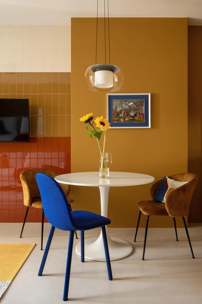 Семья с дочкой-подростком любят путешествия, неравнодушны к искусству и хорошему вину. Они хотели создать отпускную квартиру в светлых оттенках, но харизма заказчиков, их активный образ жизни и стиль одежды с вниманием к аксессуарам натолкнула на мысль предложить что-то более выразительное.
