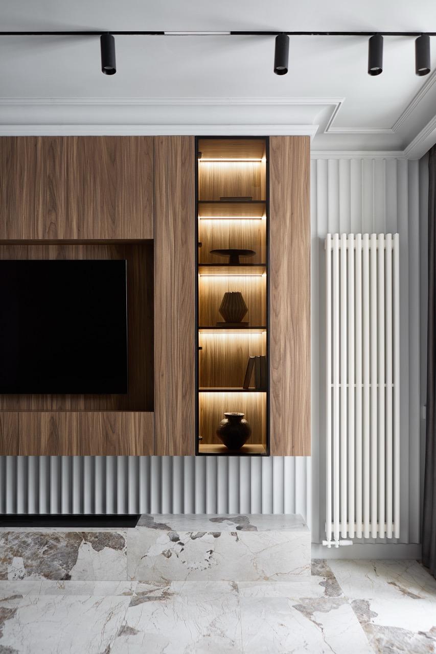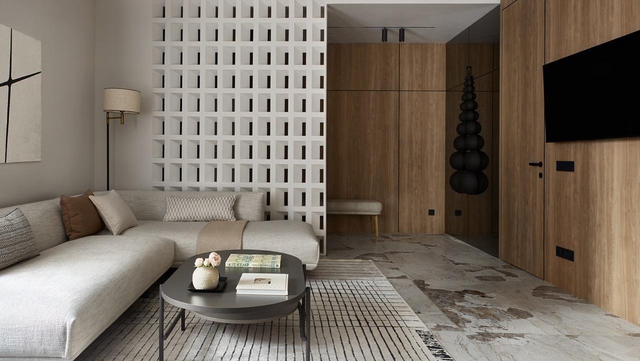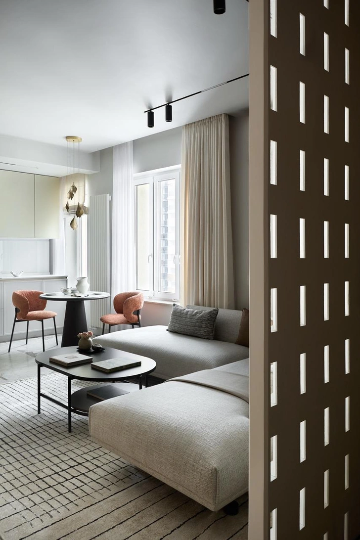 Наши заказчики — взрослая семейная пара, живущая на несколько городов. Эта квартира задумывалась как личное пространство для восстановления и спокойной жизни без рабочей суеты. Главным пожеланием было создать современный интерьер, но избежать ощущения безликого «отельного» пространства: сохранить актуальность и чистоту линий, при этом наполнить интерьер теплом, уютом и ощущением дома, в который хочется возвращаться.