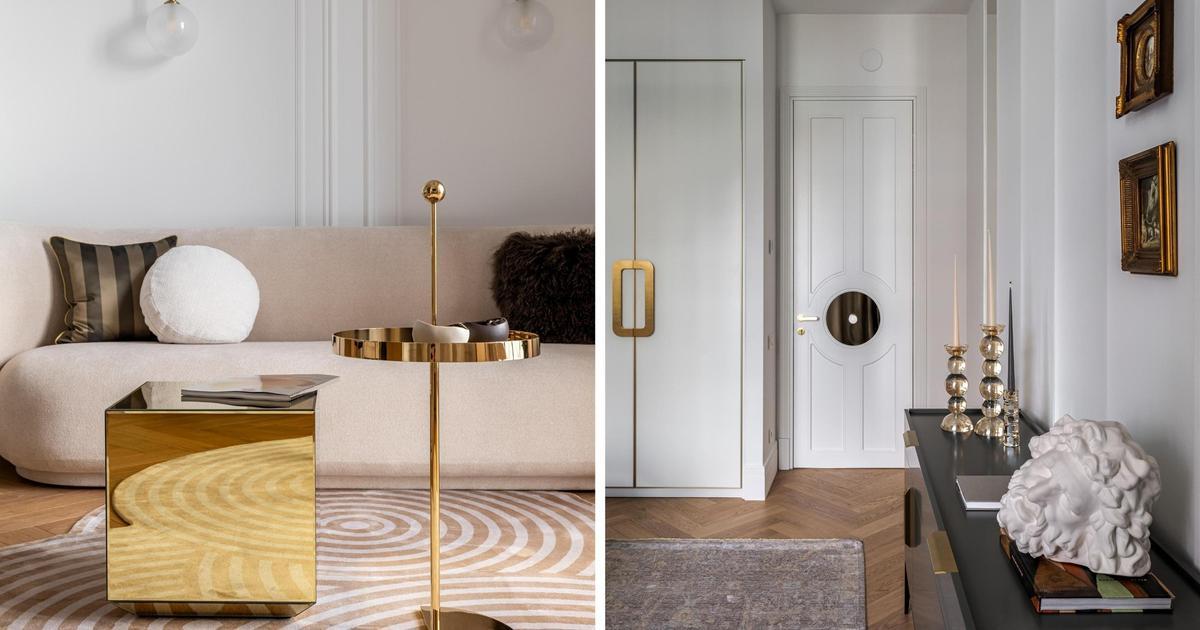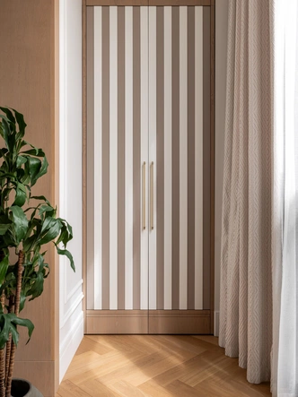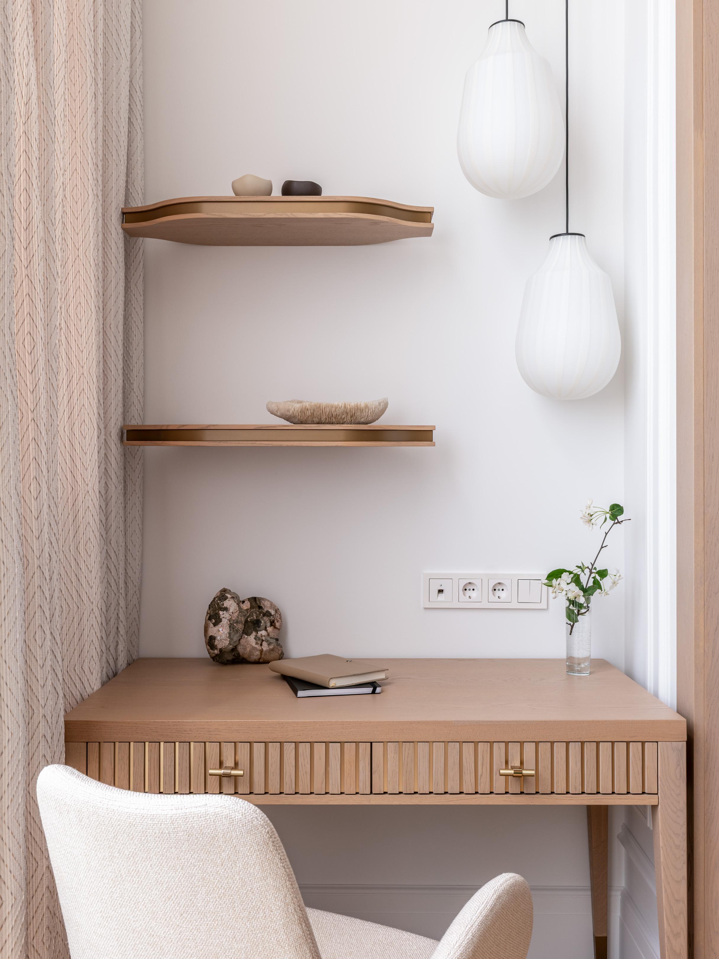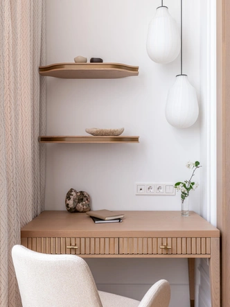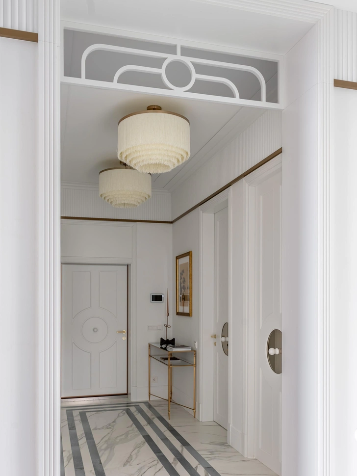 В основе — ар-деко в современной интерпретации. Графичные детали и натуральные материалы обрамили интерьер, наполненный личными историями хозяйки: семья живет среди вещей, которые несут память, характер и красоту. Нейтральная палитра с оттенками бежа, золота, светлого дуба и приглушенного зеленого добавляет легкости и делает интерьер мягким.