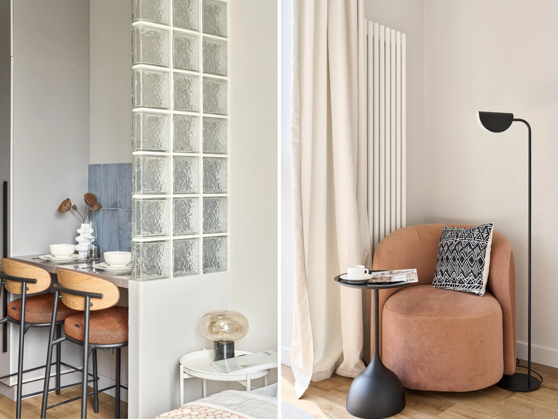 Это небольшая квартира для сдачи в долгосрочную аренду. Так что для начала я проанализировала целевую аудиторию и конкурентов, составила портрет тех, кто мог бы здесь жить. Ориентировалась на одного человека или пару без детей, которым важно быть ближе к району Москва-сити, находиться в гуще событий, а домой возвращаться, чтобы отдохнуть. Для тусовок квартира точно не подходит — это место, где можно расслабиться.