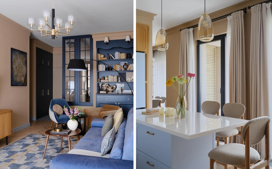 После очередной пробежки мы пошли выпить кофе. Тогда клиент рассказал о своих интересах, взглядах — он очень любит путешествовать, увлекается культурой разных стран. Интерьер с какими-то четкими стилистическими границами ему точно не подходил, а больше всего он не любит минимализм. «Только не безликий отельный номер!» — это было главным пожеланием. Ему хотелось создать место, куда хочется возвращаться из командировок, где каждая деталь связана с какими-то теплыми воспоминаниями.