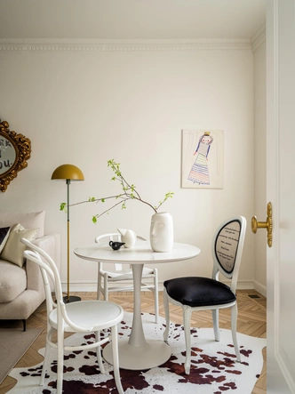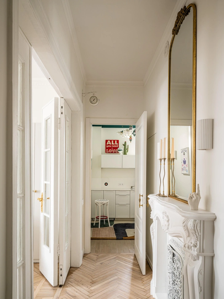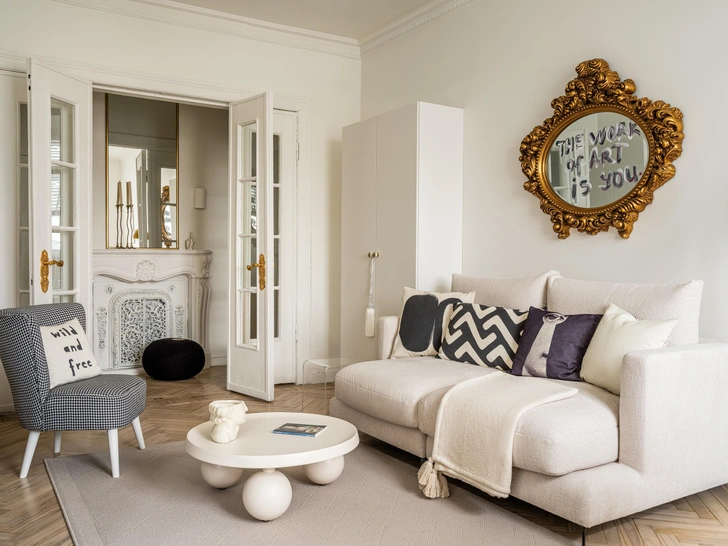 «Заказчица — современная девушка 27-ми лет, разносторонне талантливая и творческая, она — режиссер и певица. Много путешествует, у нее есть насмотренность и понимание качества и красоты жилья. Здесь совпало наше представление о том, как должена выглядеть квартира: мы сохранили историю и адаптировали пространство под наше время и современный образ жизни! , — рассказывает дизайнер.