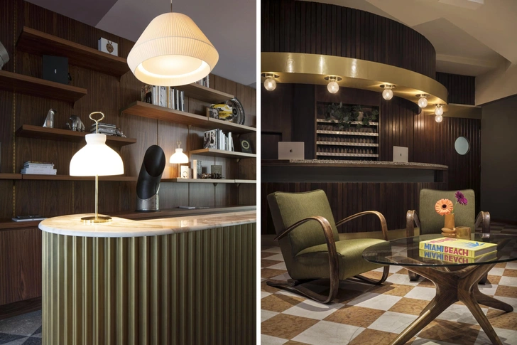В центре Милана есть еще один интересный бутик-отель. Всего здесь 64 номера. Интерьеры оформляли дизайнер Саар Зафрир (Saar Zafrir) и команда Sircle Collection. Вдохновляясь стилем 1970-х, авторы создали динамичное пространство со множеством винтажных предметов: культовые диваны Togo от Ligne Roset, классические бильярдные столы, журнальные столики, деревянная барная стойка, ретро-чайники SMEG и проигрыватели Crosley.