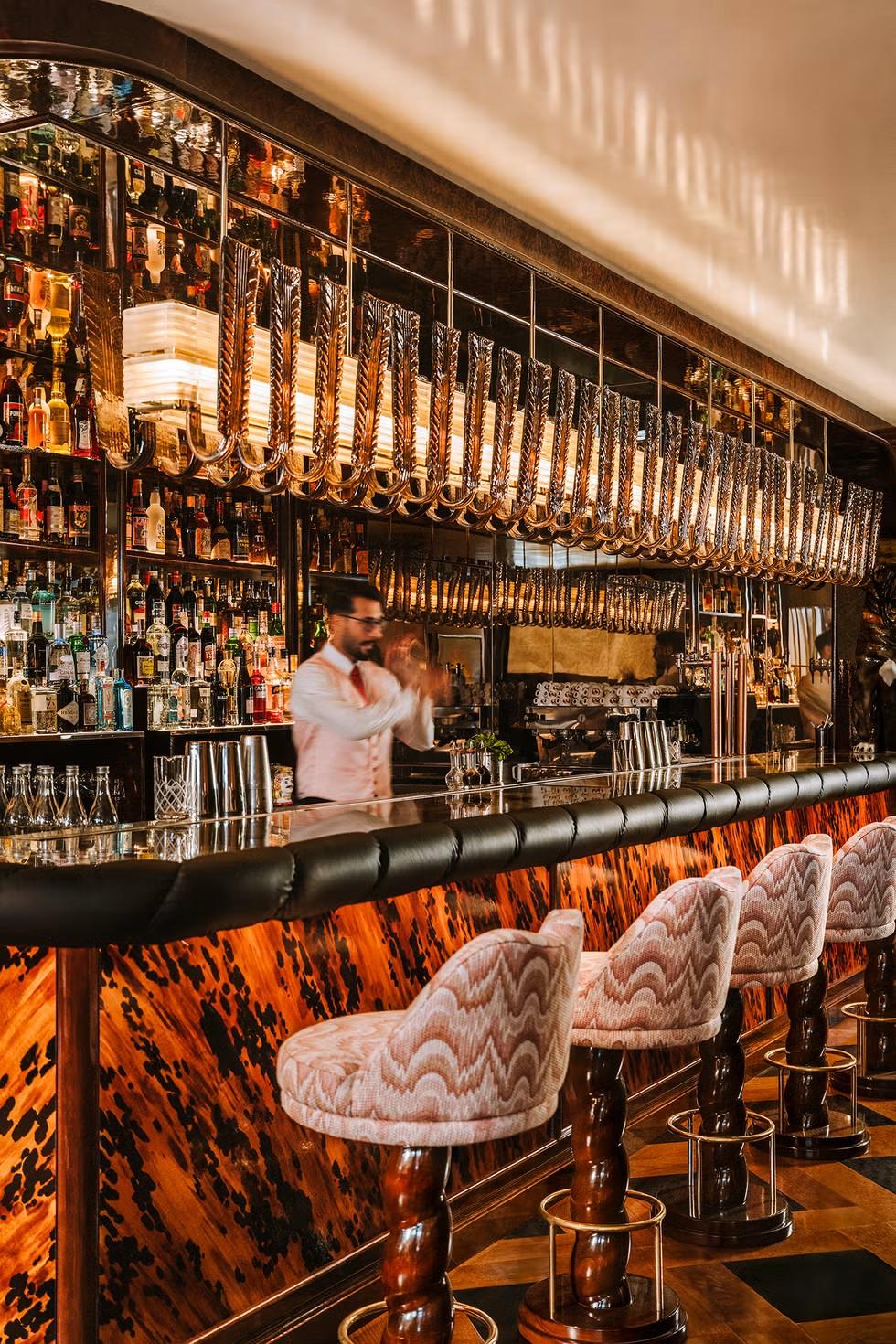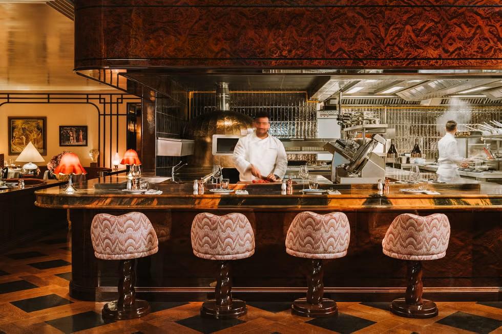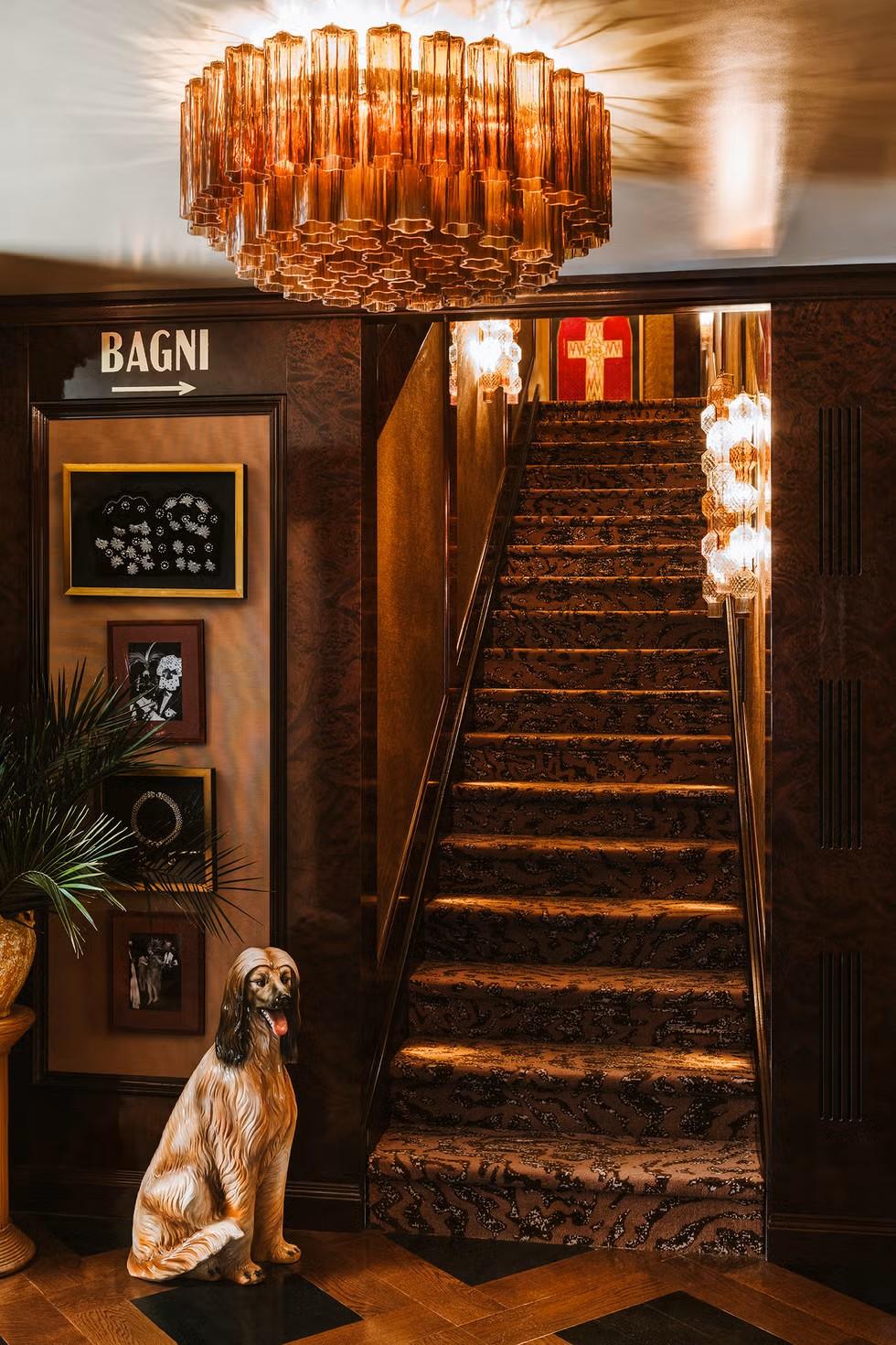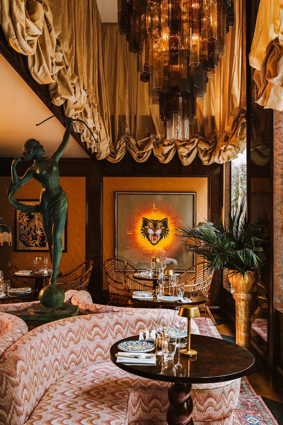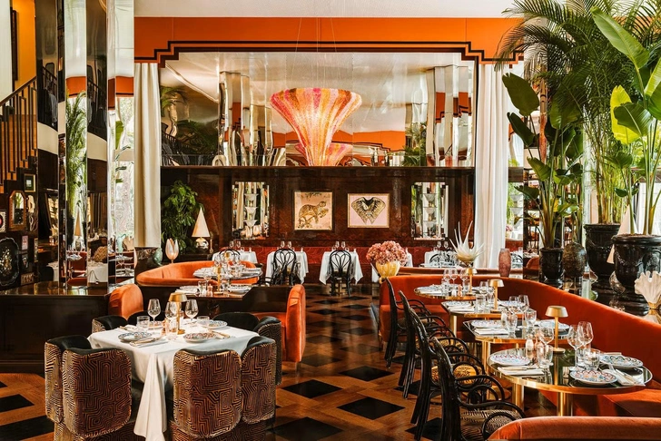 Главное в этом ресторане — интерьер. Он выполнен в стиле максимализма, который сейчас снова в моде. Вдохновением служила Италия 1970-х годов — время роскоши, изобилия и смелых дизайнерских решений. Архитекторы также ориентировались на миланскую культуру и классическое итальянское искусство.