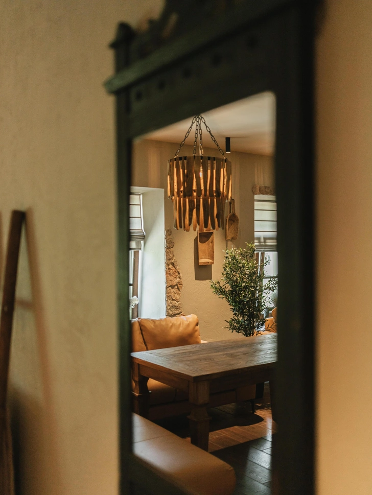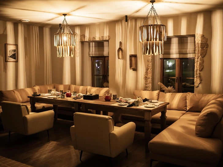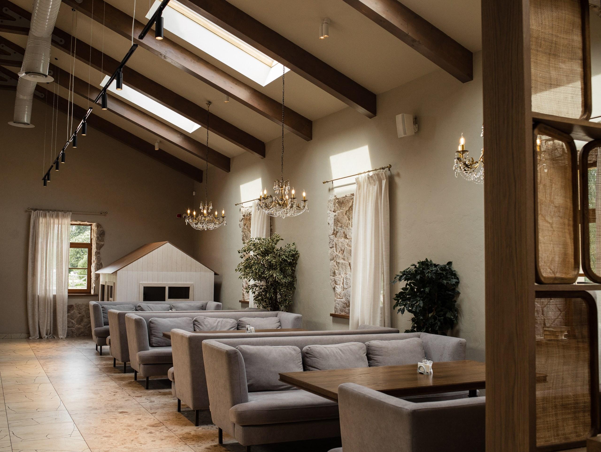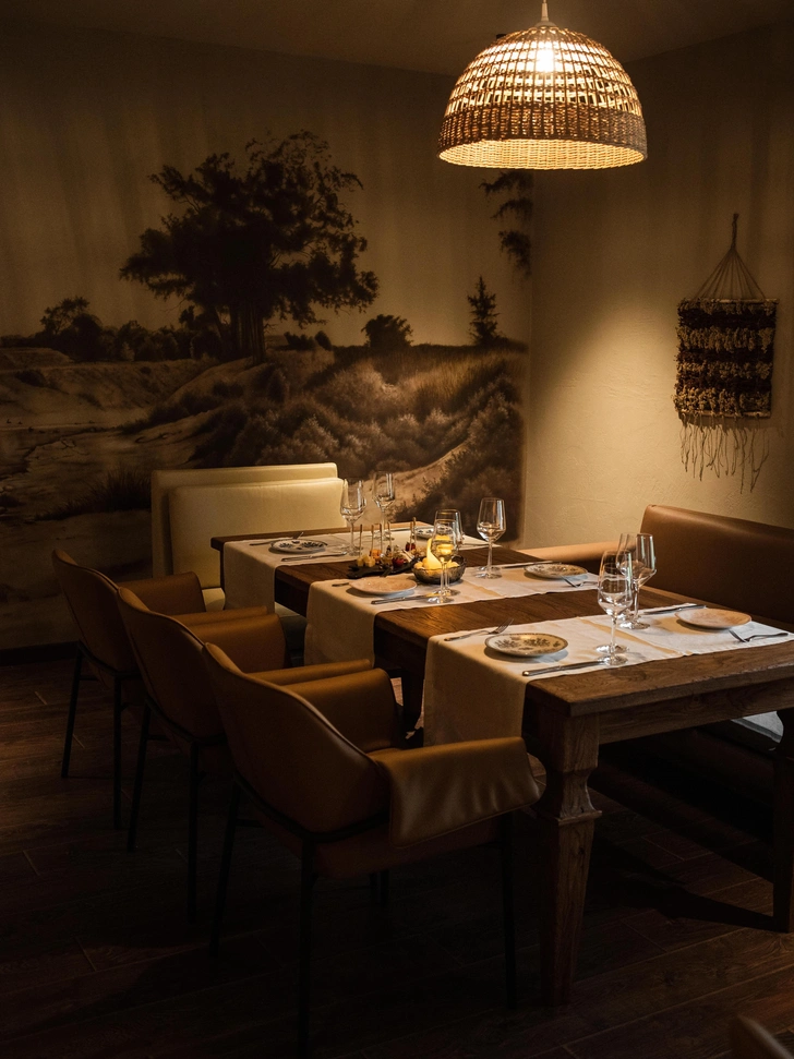 «Мы сосредоточились на том, чтобы аккуратно раскрыть уже существующие элементы. Интерьер складывается из простых материалов — дерева, камня и гипса. Своды, кирпич, деревянные конструкции не прятали и не „декорировали“, а оставили в качестве основы. Новые решения выстраиваются вокруг них и работают как продолжение, а не как контраст. Важно было не добавить новое поверх старого, а дать проявиться тому, что уже есть», — рассказывают дизайнеры «Арка Интерьеры».