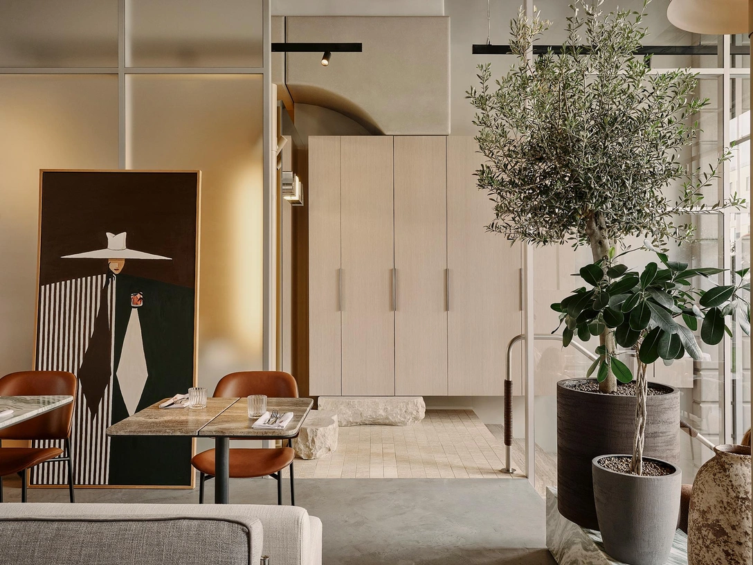 Чтобы передать ощущение гедонизма, мы вдохновились образом модного и быстрого Милана — города, живущего в быстром, но особом, естественном ритме. Так родилась идея контролируемого хаоса, которую мы выразили в архитектурной композиции пространства: смещенные оси, разнообразие текстур, рваная геометрия — все это создает ощущение энергии и движения.
