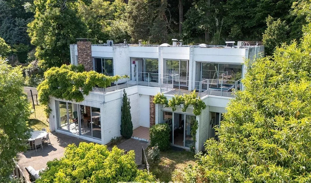 Архитектурная жемчужина Жан-Мишеля Вильмотта (Jean-Michel Wilmotte) находится в городке Ле-Плесси-Робинсон всего в десятке километров от Парижа. Дом площадью 221 м2 стоит на холме и со всех сторон окружен пышной зеленью, которая подчеркивает строгие формы постройки, характерные для работ знаменитого архитектора, и брутальность бетонных фасадов.