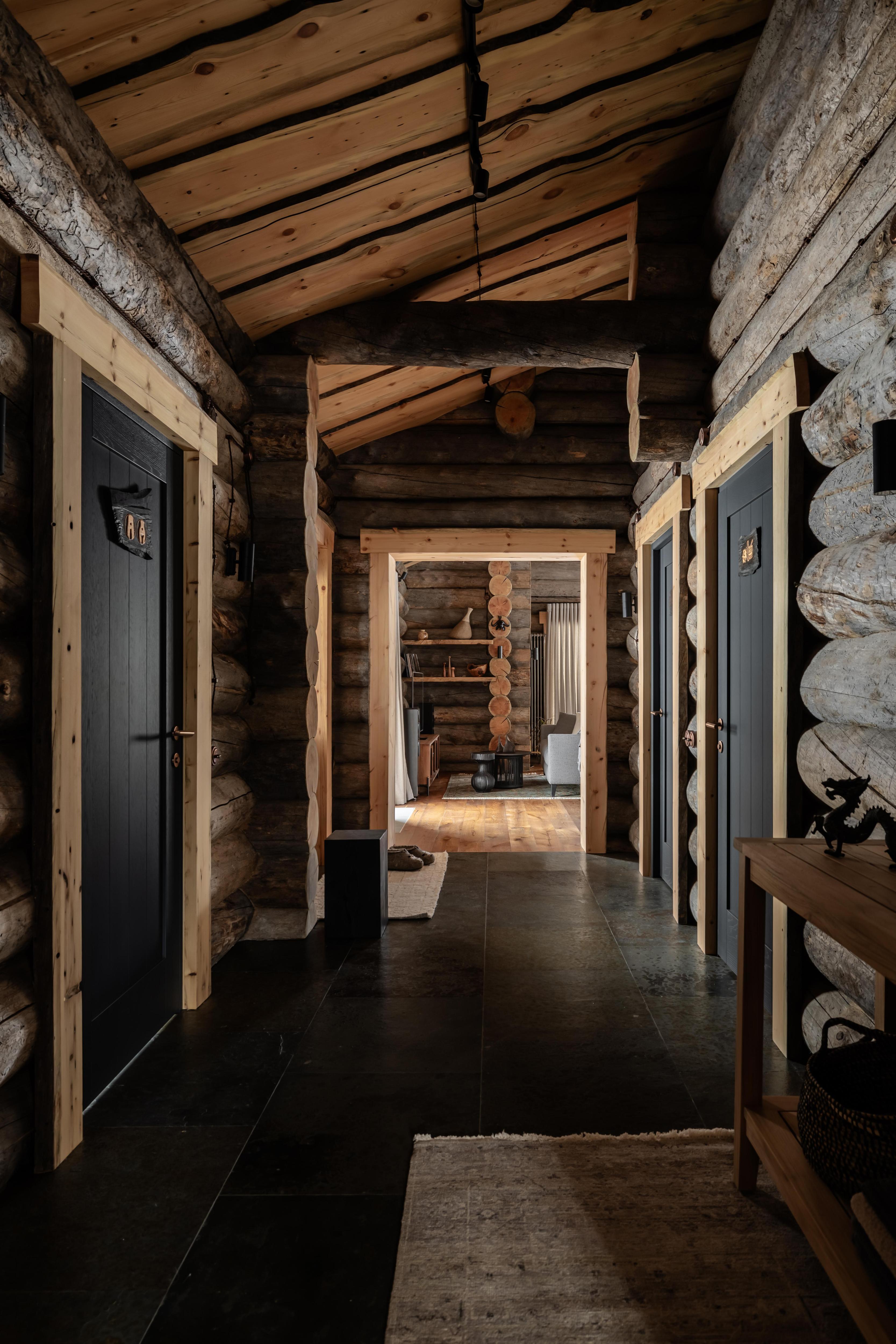 В этот проект заказчик вложил часть себя: в каждой комнате есть вещь, сделанная его руками. В кухне-гостиной это обеденный стол, полки, столик для проигрывателя, в спальне — кровать, в санузле — столешница и зеркало (но на момент съемки его еще не закончили), в коридоре — таблички на дверях, в раздевалке — весь шкаф, в постирочной — вся система хранения, в помывочной — большие детали и скамейка. Его работу можно заметить даже на фасаде.