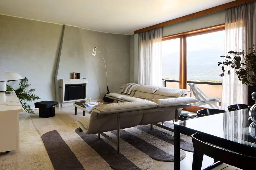 Идеальный дом нашелся в небольшой деревне на берегу озера. Это была вилла 1950-х годов, спроектированная архитектором Марио Кракки. Дом был построен как дача и сохранил оригинальные элементы: камин, полы, оконные рамы и сами окна.