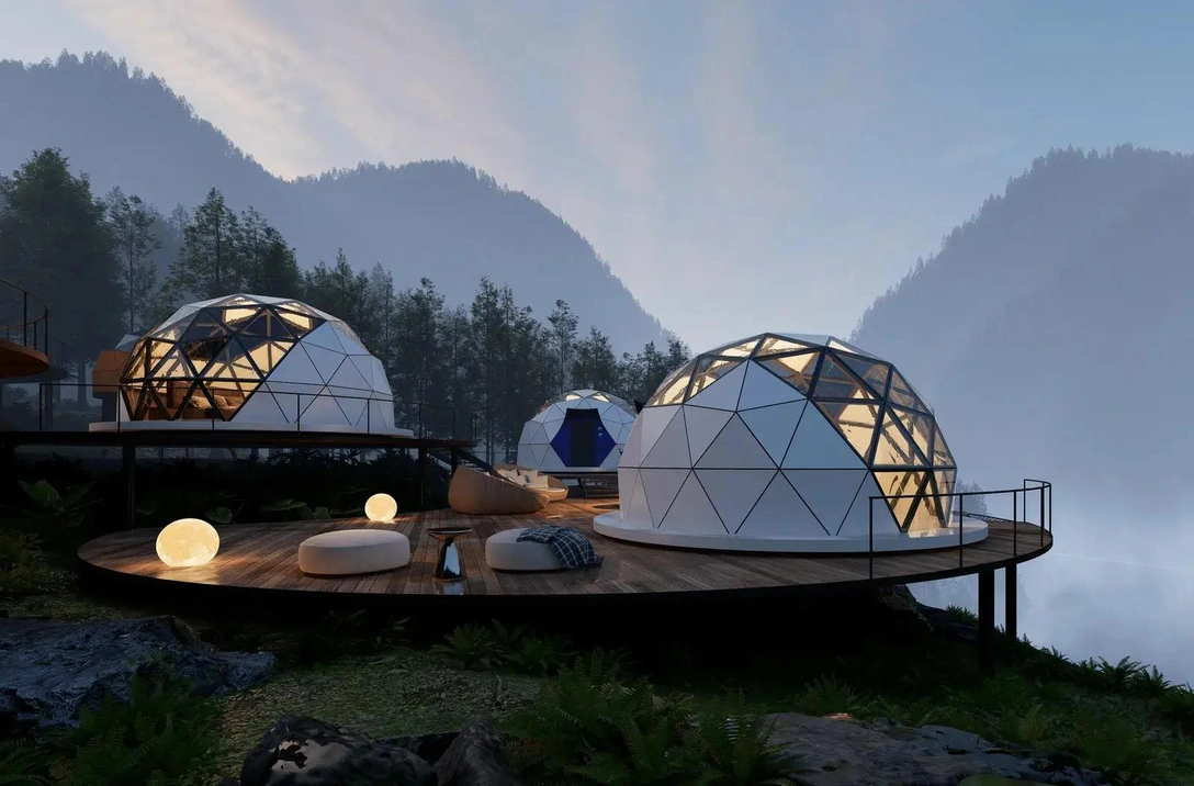 На рынке появился необычный сборный купольный дом площадью 28 квадратных метров от китайской компании Capsule Castle. Его цена начинается от 13 000 евро, а на установку требуется всего три дня. Такой дом имеет два этажа, панорамные окна и сделан из алюминия с отделкой из массива дерева.