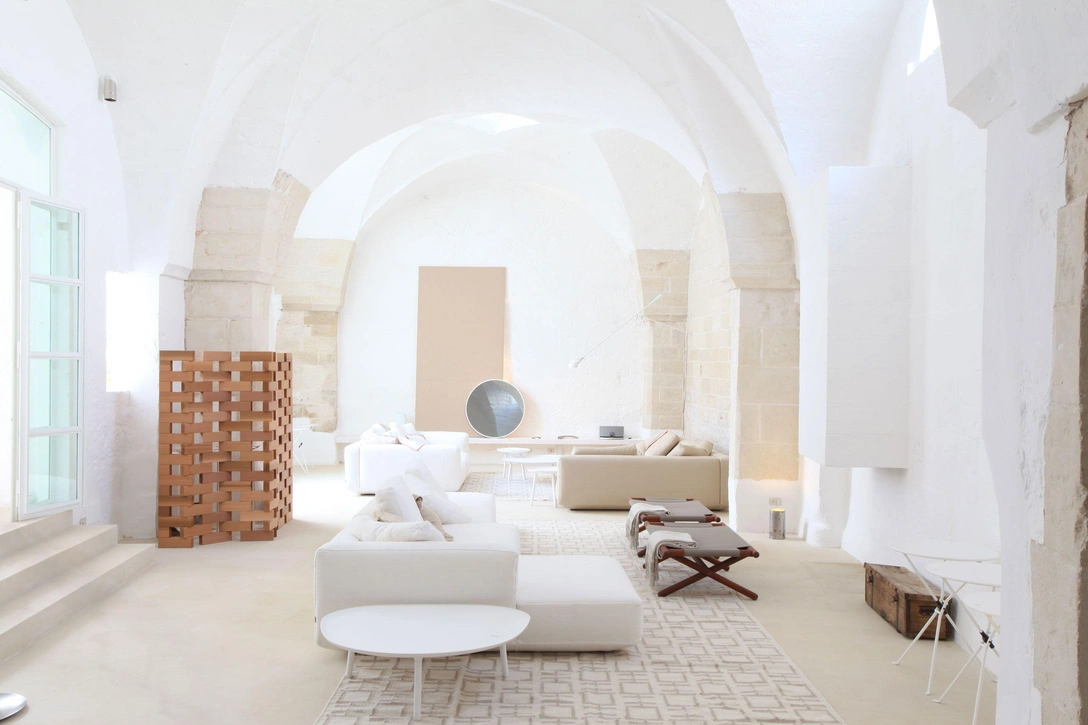 Старинное здание 1600-х годах долгое время работало как маслобойня. Когда Людовика с Роберто впервые увидели его, потолки из туфа были закопченными от многовековой работы керосиновых ламп, в комнатах все было скрыто полумраком, а часть стен нуждалась в реставрации. «Все это было неважно, у нас захватило дух, как только мы вошли в дом, — говорит Роберто. — Пространство с стенами высотой до шести метров в высоту, величественные своды и массивные опоры впечатляло с первого взгляда».