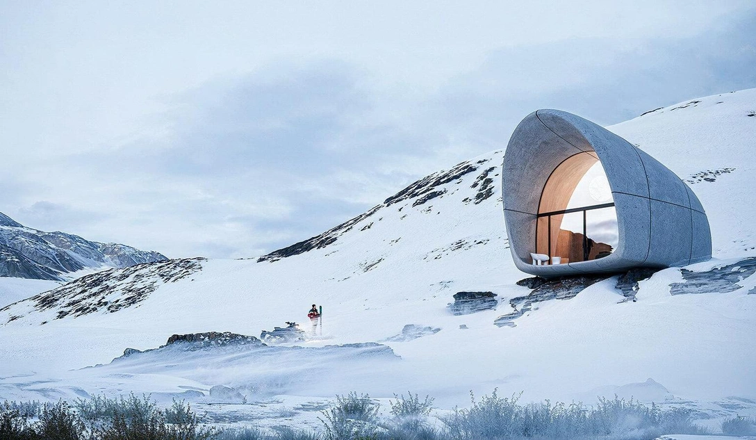 Студия Stipfold спроектировала коттедж AltiHut — он стоит на высоте 3014 метров над уровнем моря! Дом станет частью первой в Грузии устойчивой экосистемы высокогорного гостеприимства. Авторы проекта объединили компактную планировку, архитектурный фибробетон и панорамное остекление, чтобы минимизировать воздействие на окружающую среду.