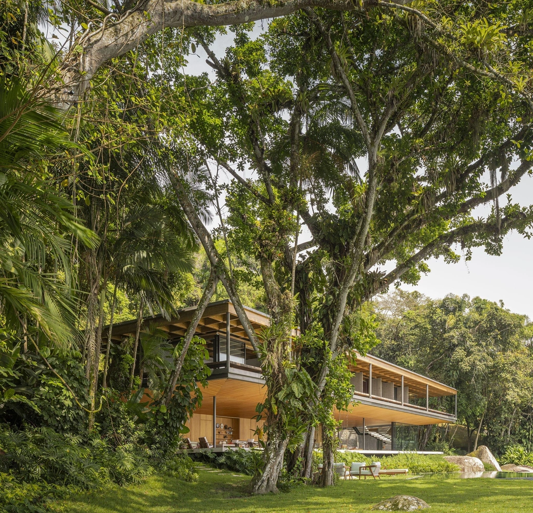 Проект AEA House, созданный бюро Jacobsen Arquitetura и ландшафтным дизайнером Родриго Оливейрой, стирает границу между архитектурой и природой, создавая плавный диалог между зданием и местной экосистемой.