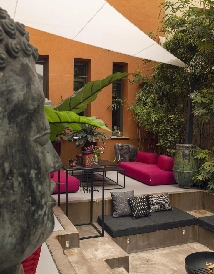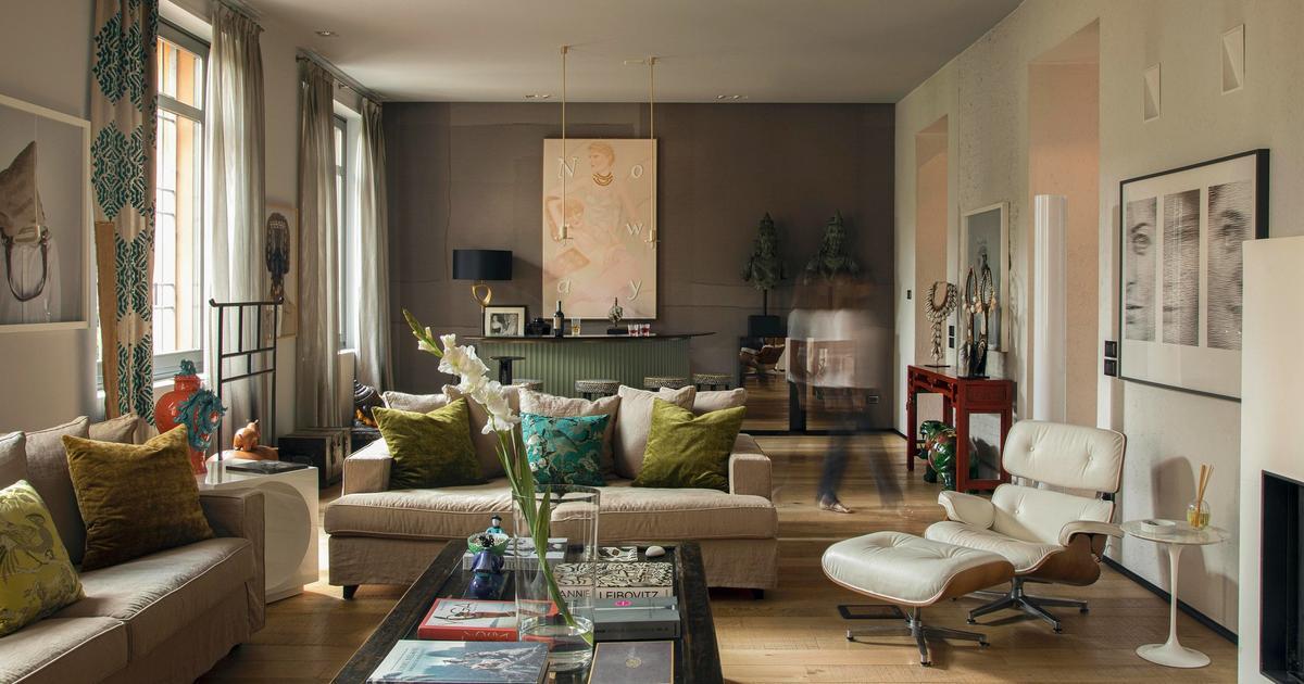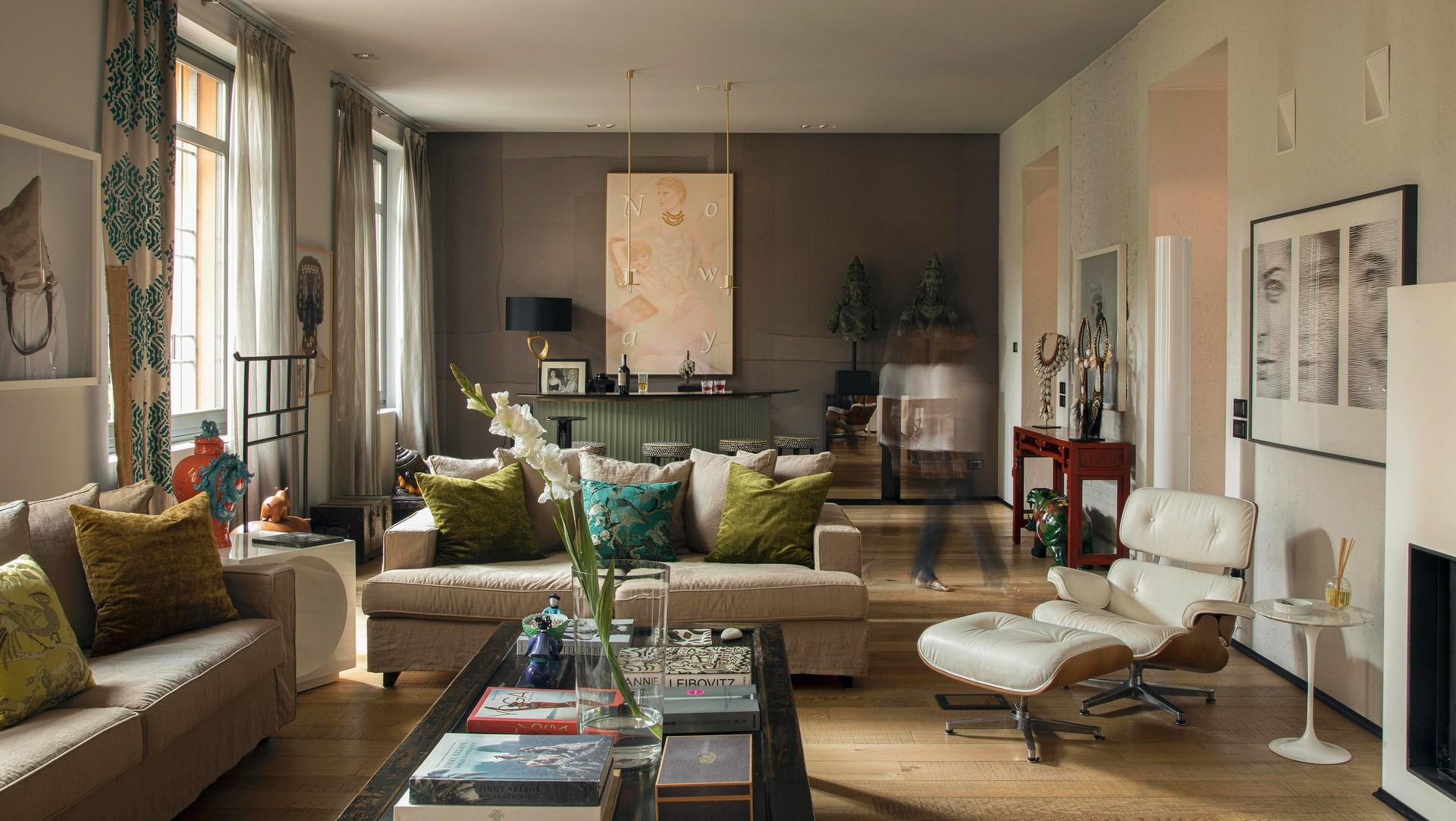 Образ жизни владельцев этого дома в полной мере отражен в его интерьере, где преобладают коллекции современного искусства и восточные артефакты — предметы, которые они кропотливо собирали и бережно хранили, возвращаясь из многочисленных профессиональных и любительских путешествий. В дизайне дома сочетаются следы исторического наследия, этнические мотивы и современность.