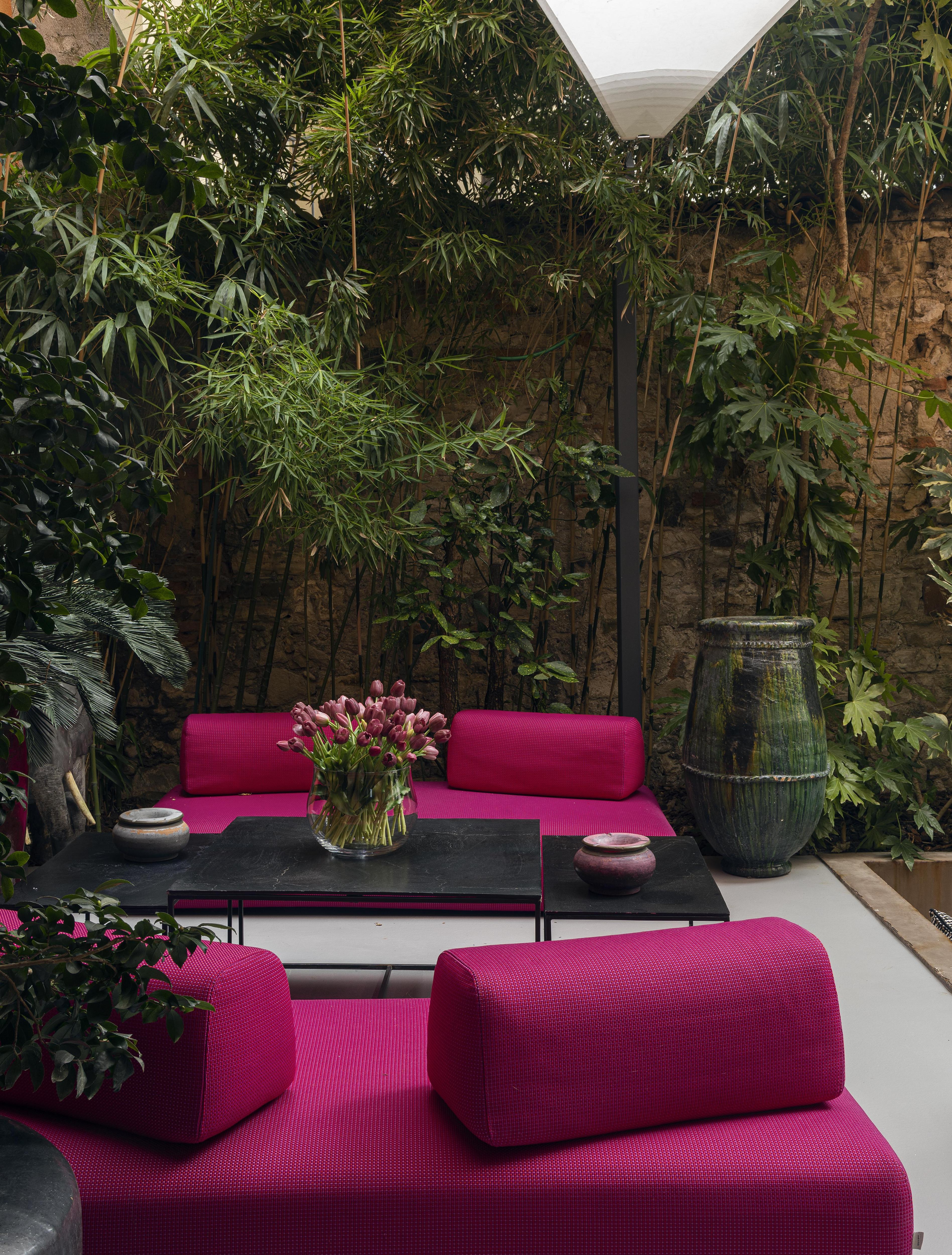 В доме есть отдельное крыло для гостей, а прилегающая территория, которая долгое время служила монастырским огородом, теперь превратилась в уютный сад. Выстроенный в форме анфилады галерейный коридор служит столовой с обеденной группой, пианино и ярким акцентным светильником.