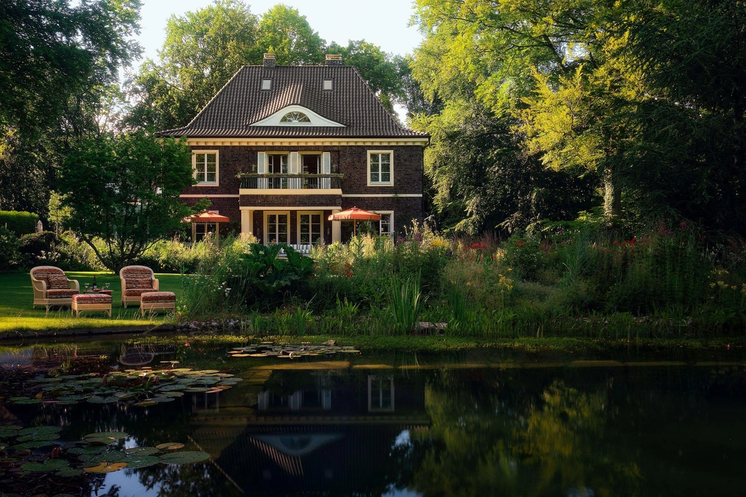 Помимо интерьеров обновили и участок: здесь есть живописный пруд, огород и небольшая парковая зона, созданные ландшафтным архитектором Мануэлем Верле