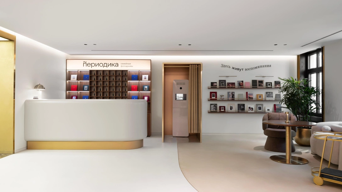 Новое пространство «Периодика» на Гоголевском предоставляет услугу создания семейных фотоархивов. В нее входит оцифровка архивных фотографий, разработка макета и печать фотоальбома с семейной историей клиента. Эта идея сохранения памяти в легла в основу концепции интерьера, разработанную студией Linii.