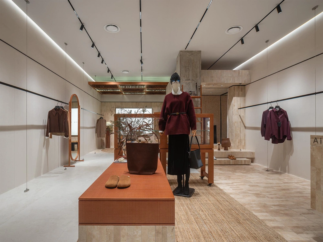 Чен стремился раскрыть минималистскую философию бренда, обратив особое внимание на сочетание природных форм с одеждой — тем, что создал уже человек. Органичная текстура натурального камня и дерева перекликается со строгой геометрией металла и кристальной прозрачностью стекла. Такую атмосферу авторы проекта называют «декоммерциализированной» — она призывает переосмыслить суть потребления и предлагает замедлиться, сосредоточившись на эстетике.