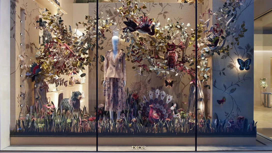 Отдавая дань увлечению Диора цветоводством, Марино оформил стеклянную витрину магазина «садами» из переработанных материалов. «Я хотел, чтобы окна были полны деревьев», — говорит архитектор, который считает, что фасады современных бутиков страдают одинаковостью.