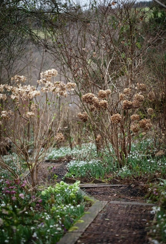 Теперь здесь есть живая изгородь из кустарников из многолетних растений, огород и даже лесок. Вдоль зеленых тропинок распускаются крокусы, цикламены и морозники. «Нас вдохновил сад Клода Моне в Живерни, густой и разнообразный. Мы постоянно ищем пробелы в цветении и стараемся их заполнить, так что сад постоянно меняется», — рассказывает Фиона.