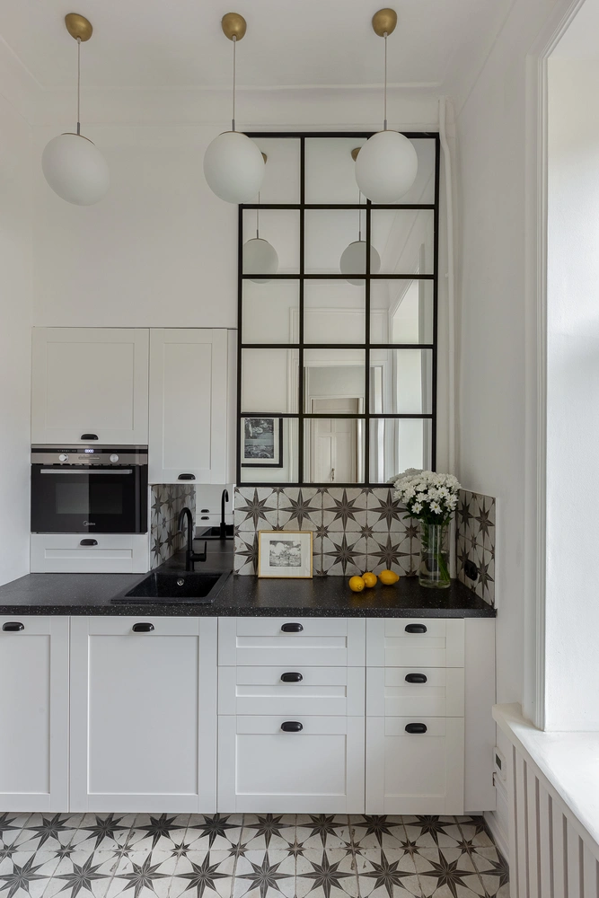 «Сохранился не только исторический декор, но и планировка — удивительная для столь малого пространства! Она круговая, изначально здесь было четыре комнаты. Две из них мы объединили ради увеличения спальни, также объединили санузел. В остальном все осталась неизменным, как было запланировано в 1913-ом году».