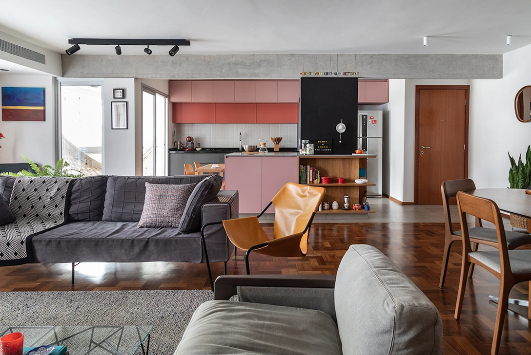 Хозяин этой квартиры, расположившейся в крупном районе Сан-Паулу Жардинс, переехал сюда из центра города в поисках более спокойной жизни и места, где он сможет принимать своих друзей. Создание интерьера заказчик поручил дизайнерам из DT Estúdio, которые занимались оформлением его предыдущей квартиры. Одной из главных задач команды было задействовать в новом проекте уже имеющееся светильники, предметы декора и бытовую технику.