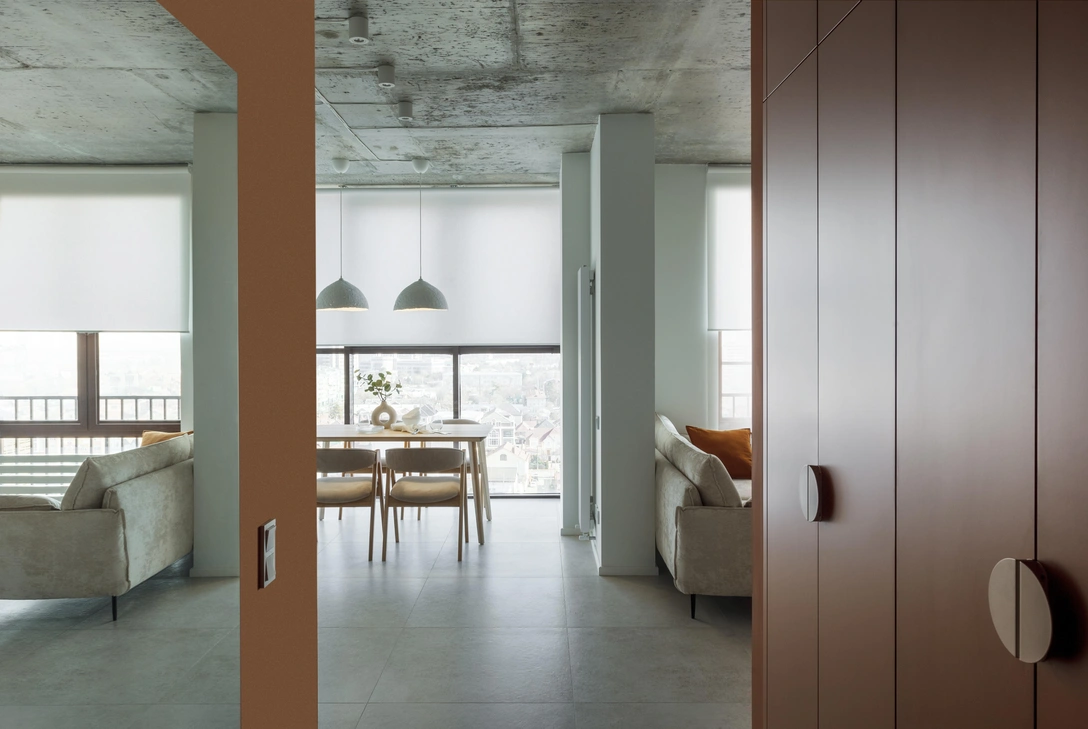 Поскольку заказчица не имела ничего против минимализма, дизайнер решил сделать интерьер максимально лаконичным. К этому располагали и особенности квартиры: она находится на одном из верхних этажей башни-новостройки, из окон открывается красивый вид на город.