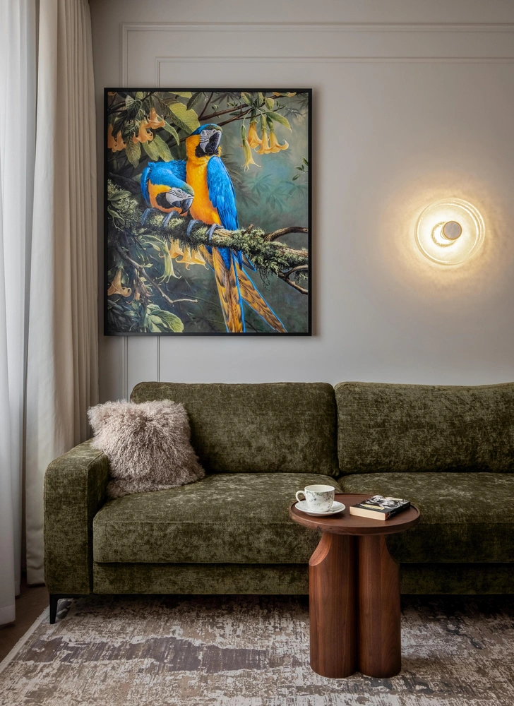 Основная идея проекта: создать интерьер, напоминающий зеленый цветущий сад с прекрасными птицами