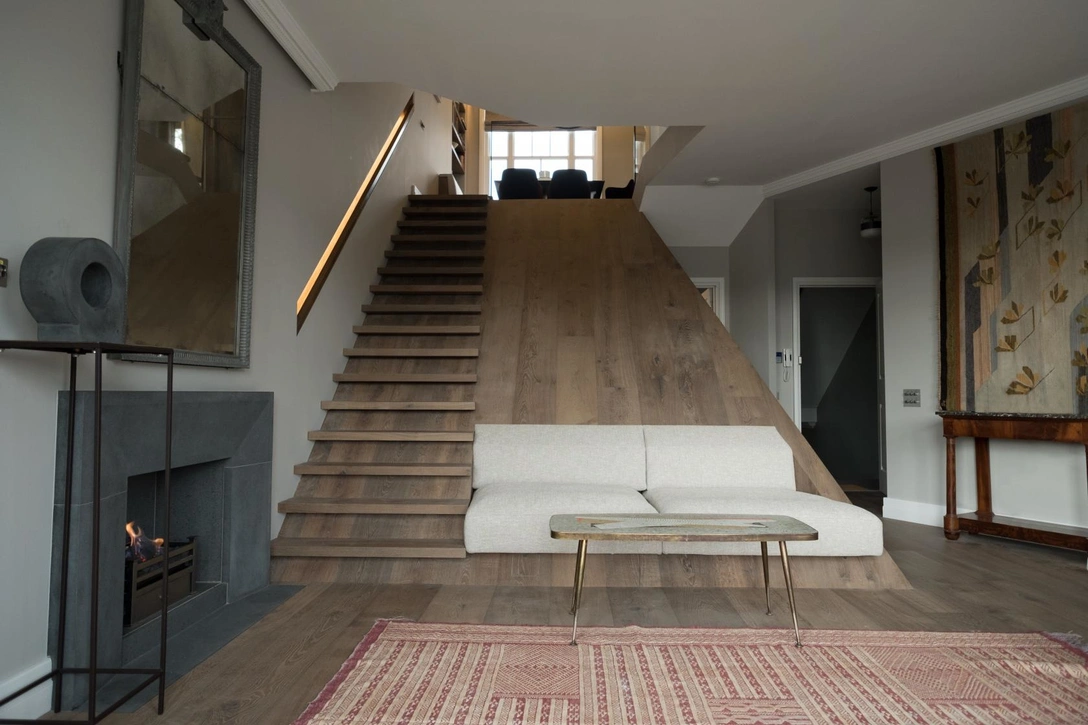 Эти необычные двухэтажные апартаменты находится в самом сердце Лондона — на первом и втором этаже дома эдвардианской эпохи в районе Челси. Прежде здесь было две небольших квартиры, но хозяева решили объединить их в одну большую площадью 140 квадратных метров и позвали для этого своих давних друзей, греческую архитектурную студию Deca Architecture, с которой уже раньше успешно работали. Архитекторам был предоставлен полный карт-бланш. Единственным условием было создать комфортный интерьер в современном стиле, где было бы просторно, светло и уютно, а также можно было бы принимать гостей.