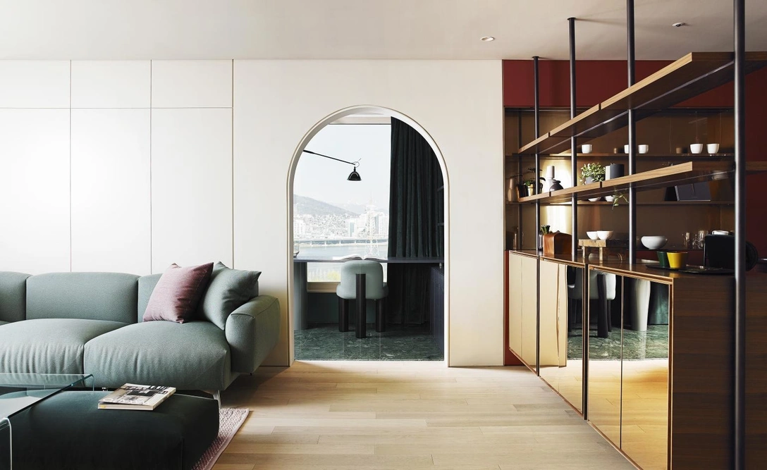 Заказчики студии intg отхватили настоящий алмаз: из квартиры площадью 112 кв. м, расположенной в 30-этажном небоскребе, открывается захватывающий вид на реку Хан и Сеульскую башню на горе Намсан — главную достопримечательность города. О таком мечтает едва ли не каждый житель столицы Южной Кореи!