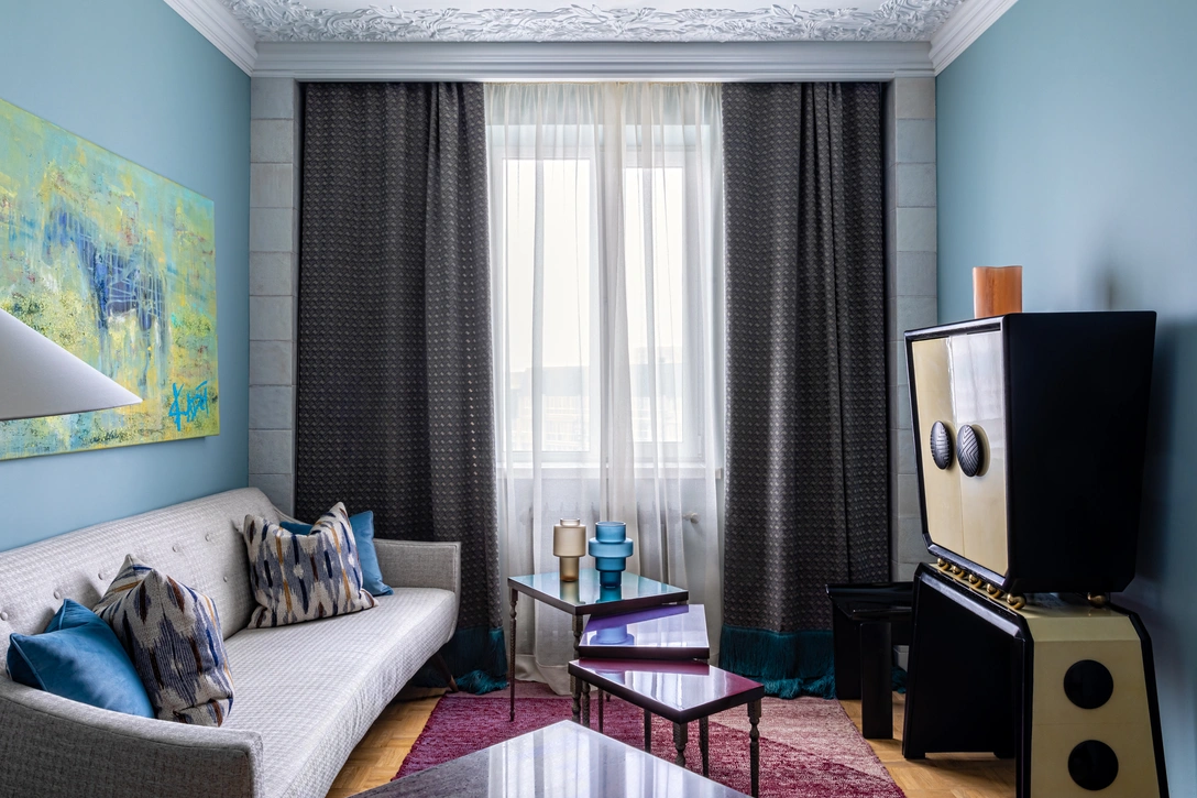Эту квартиру заказчик купил много лет назад и долгое время она стояла в состоянии ремонта и вот, наконец, в этом году проект удалось завершить! Сама задумка появилась давно: владелец любит яркие оттенки и необычные предметы, что и стало основой интерьерной концепции. Каждая комната выполнена в своей цветовой гамме и неповторимом смешении стилей.
