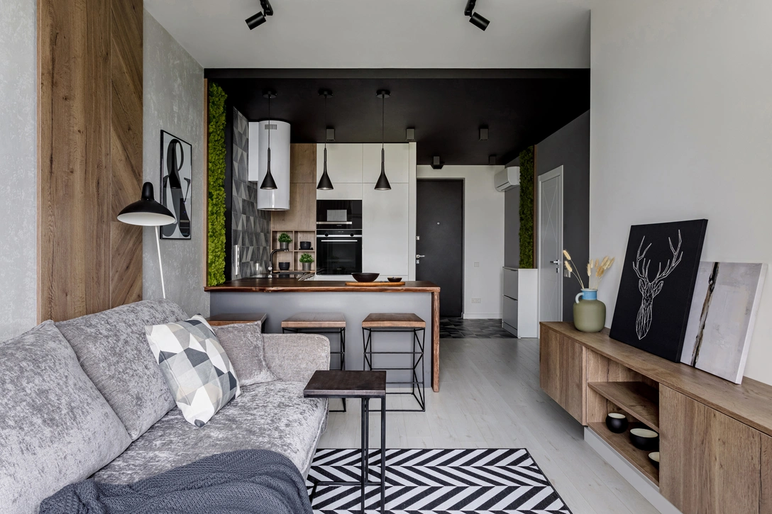 Цветовая гамма: монохром + дерево