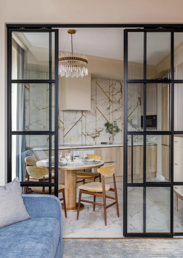 «Заказчики активно участвовали в комплектации проекта, и с удовольствием приняли идею использовать винтаж в квартире. Так мы оказались в пространстве Mobeledom, где нашли стулья 1960-х годов, очень стильные и эргономичные. Стулья отреставрировали, обили элегантной тканью и подарили им новую жизнь».