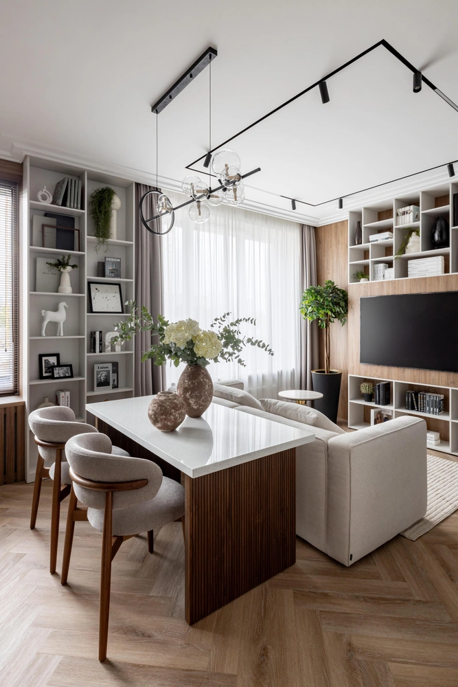 Кухня-гостиная. Декор, IZZI Decor. Кварцвинил, Vinilam. Стол изготовлен по эскизам дизайнера, Giulia Novars.