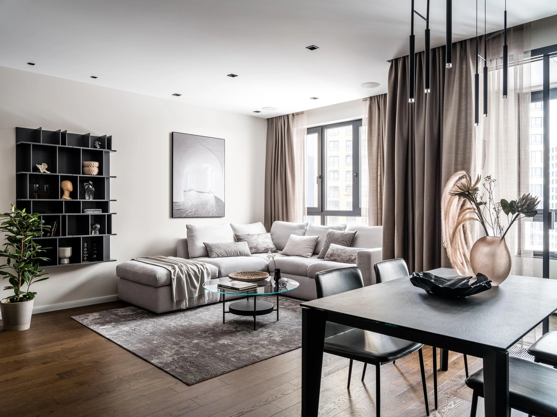 Основная идея проекта: монохромный функциональный интерьер
