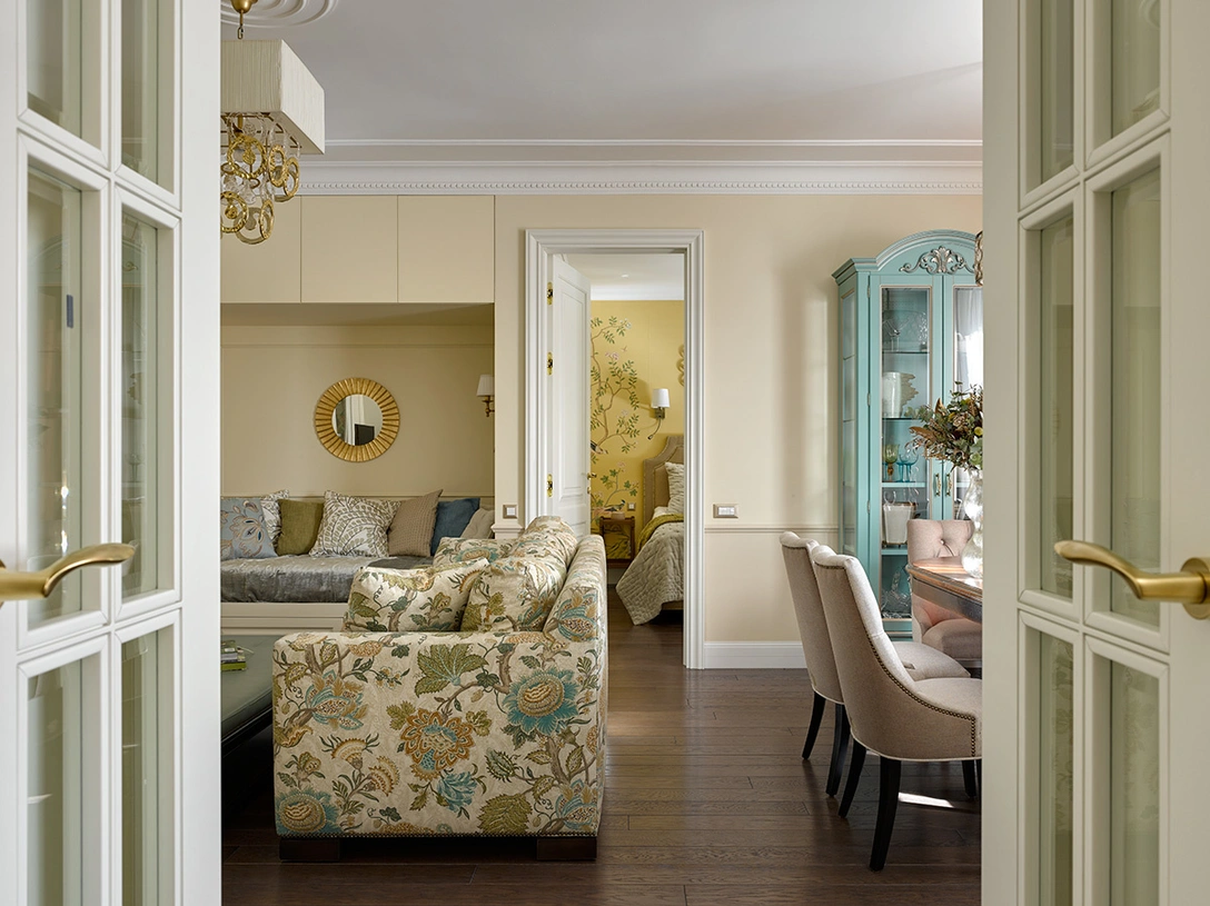 Цветовая гамма: нейтральная с золотыми и бирюзовыми акцентами