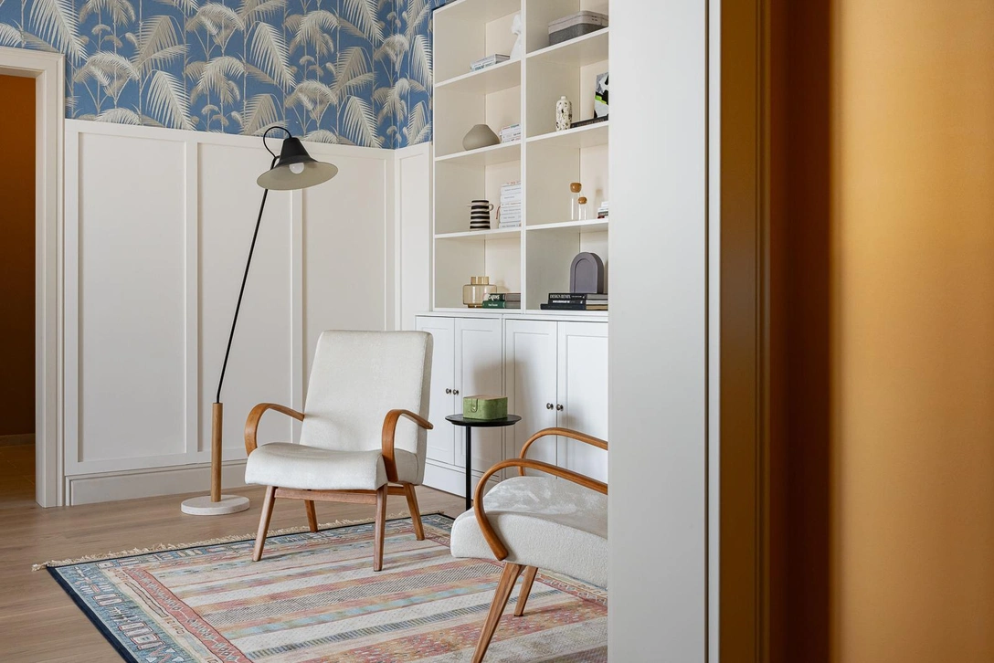«Обычно семьи с детьми относятся к отделке прагматично — предпочитают обои под покраску, — говорит Александра, — но я люблю обычные обои, и мы их сделали практически в каждой комнате, но там, куда ребенок не сможет дотянуться». В коридорах и кухне, например, обои — на потолке.
