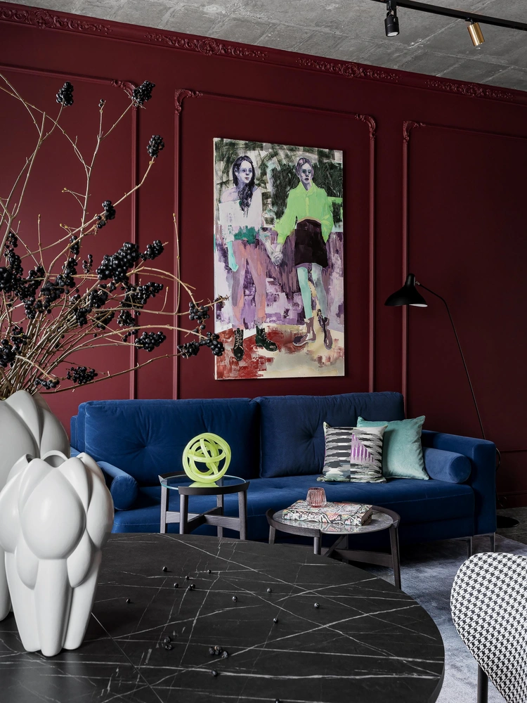 Основная идея проекта: создать смелый и комфортный интерьер для семьи с ребенком