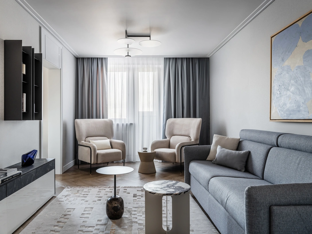«Такой подход к проектированию одобрили заказчики — семейная пара средних лет, оба врачи. Их главным пожеланием было сделать квартиру функциональной и удобной для жизни».