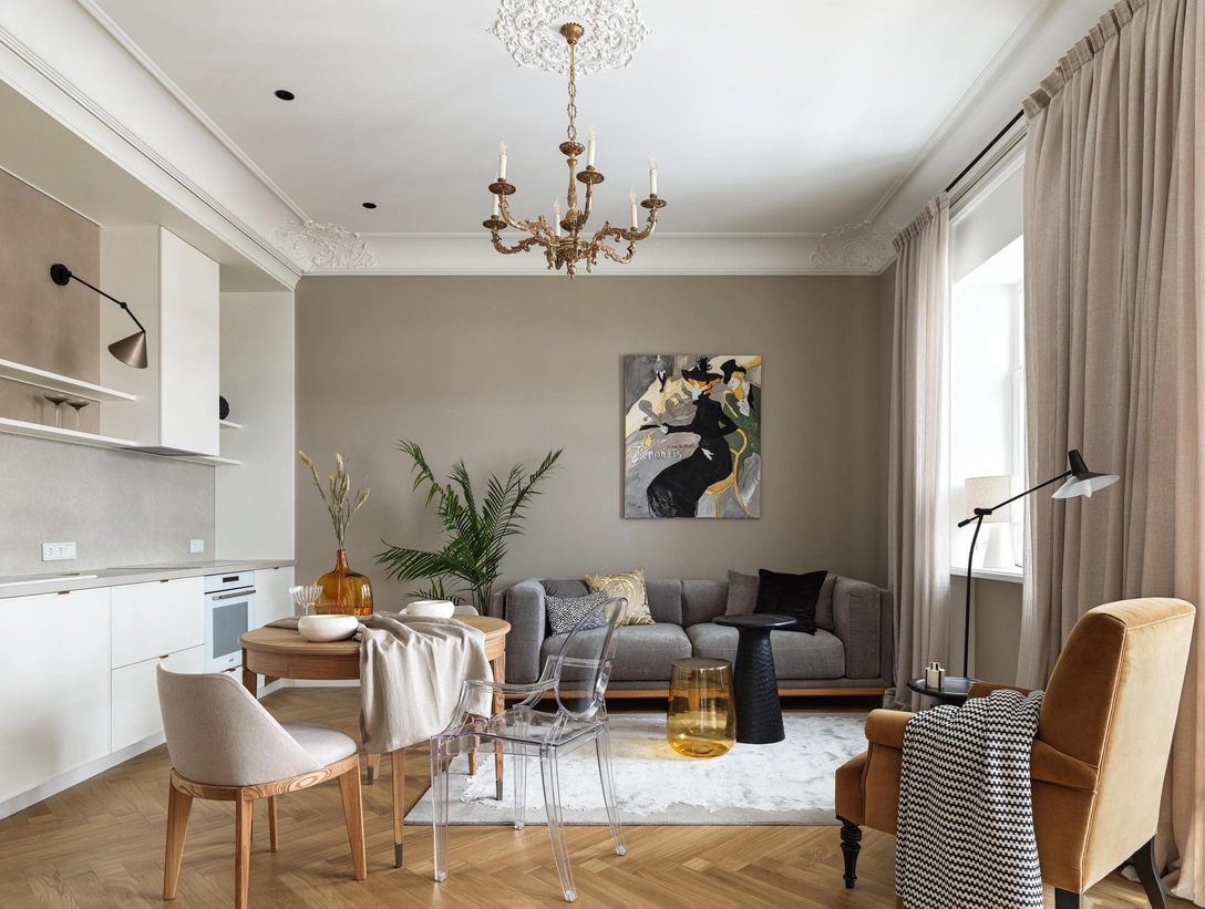 Основная идея проекта: создать интерьер, в котором сочетается современный городской комфорт с душевностью классики
