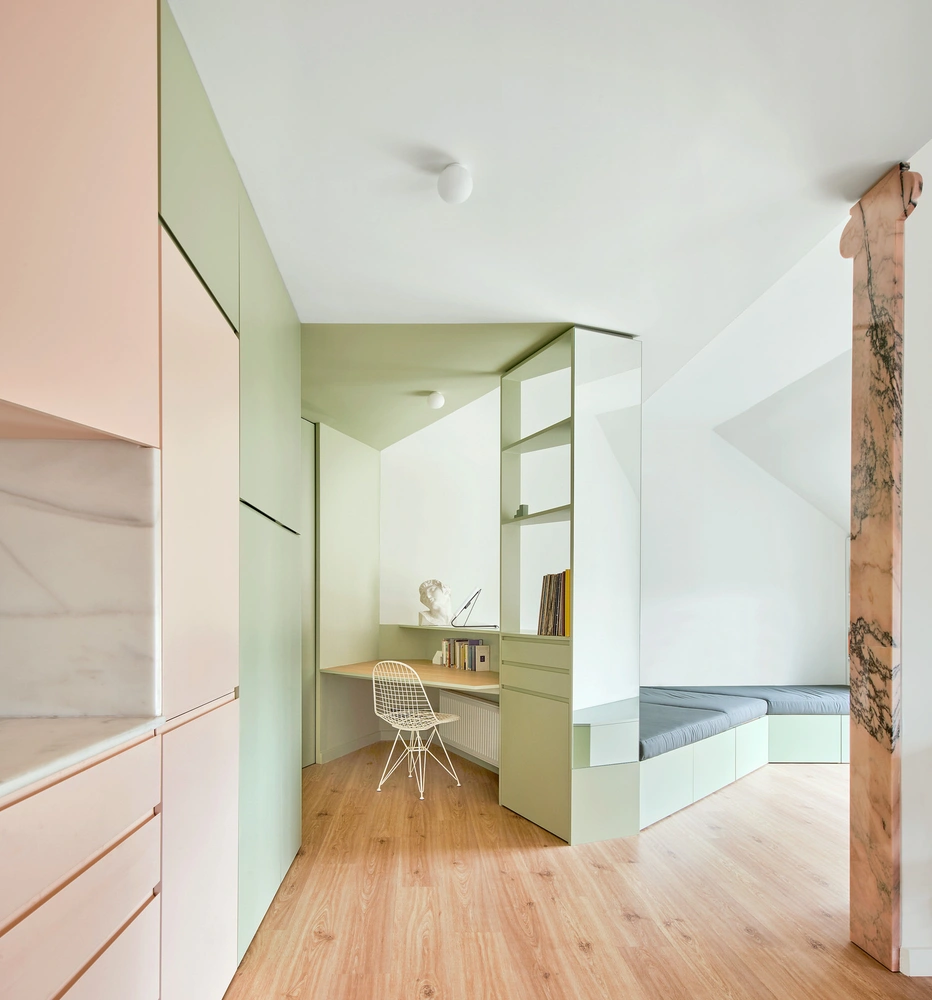 «Диваны превращаются в письменные столы; кровати на самом деле оказываются шкафами, а шкафы — ванной. Ну ладно, про ванну — шутим», — рассказывают дизайнеры студии AMOO Аурели Мора (Aureli Mora) и Омар Орнак (Omar Ornaque) о своем дерзком подходе к работе.
