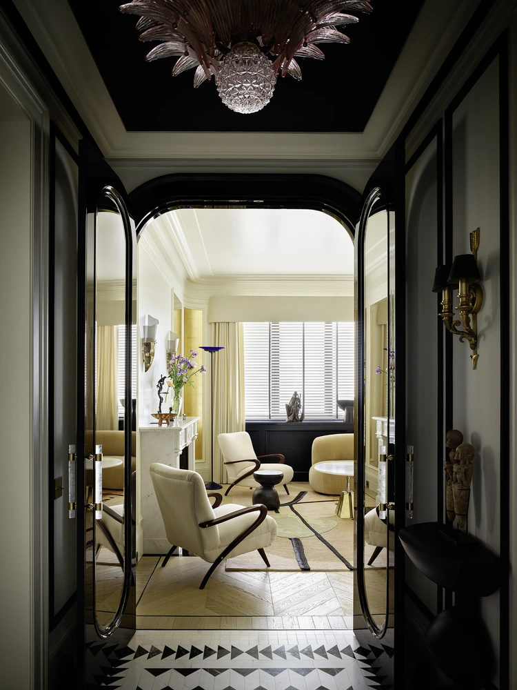 Так здесь появились мраморное панно на полу в прихожей, дверной портал, отделанный черным лаком, ручки из горного хрусталя, бронзы и полудрагоценных камней, сложная лепнина, золотая поталь… В общем, все, как в номере роскошного парижского грандотеля.