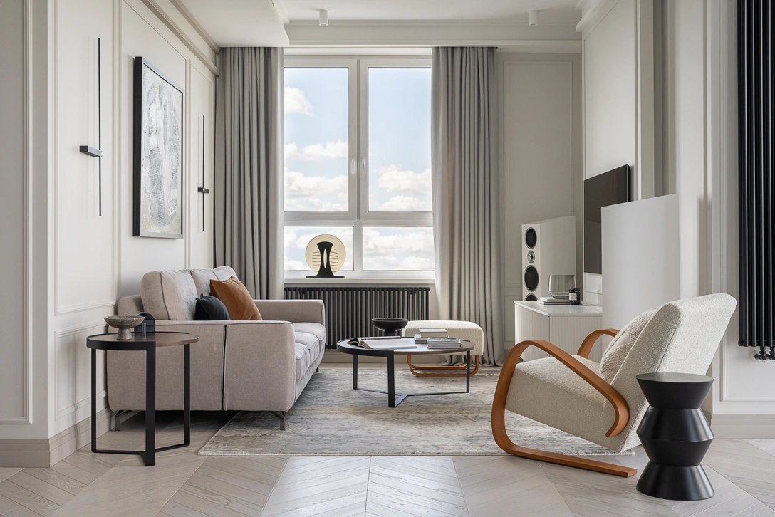 Основная идея проекта: создание комфортной, функциональной, стилистически нейтральной «базы» — фона для искусства, авторской керамики, объектов российского дизайна и винтажных предметов