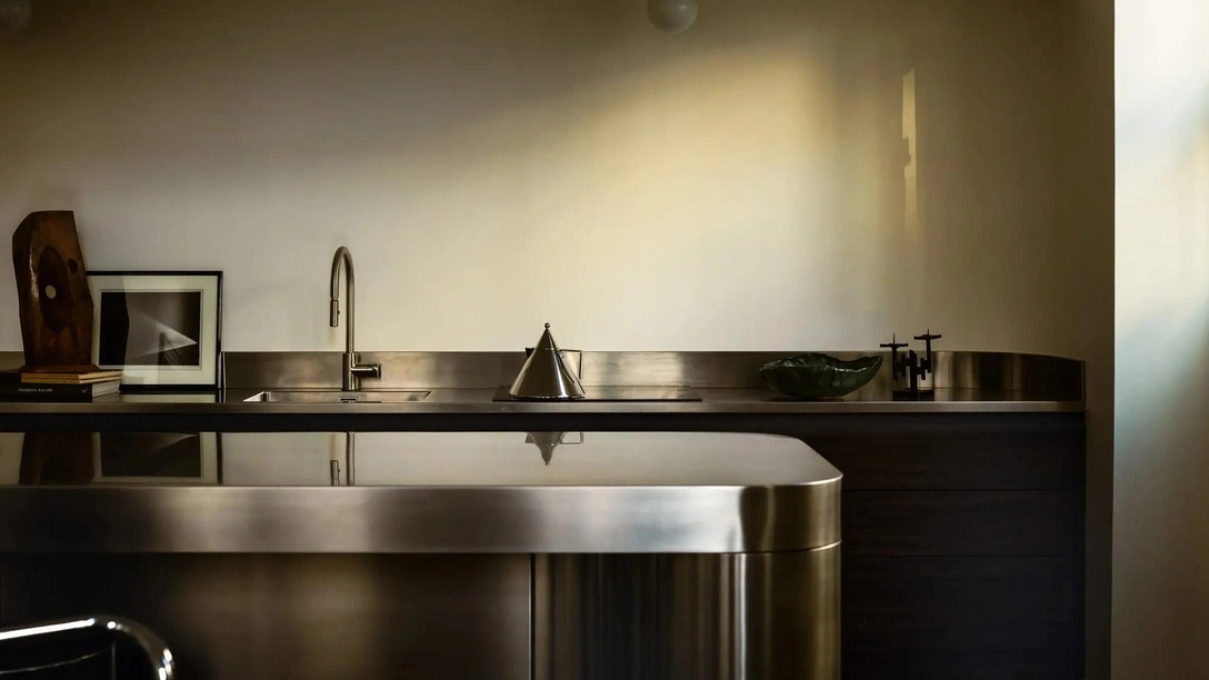 «Искусство американских индейцев отсылает к древней культуре и ремеслу, а чаши Puiforcat с их элегантным дизайном добавляют изысканности. Вместе они создают баланс, отражающий общую философию пространства: гармоничное сосуществование прошлого и настоящего, где одно усиливает другое», — рассказывает дизайнер.