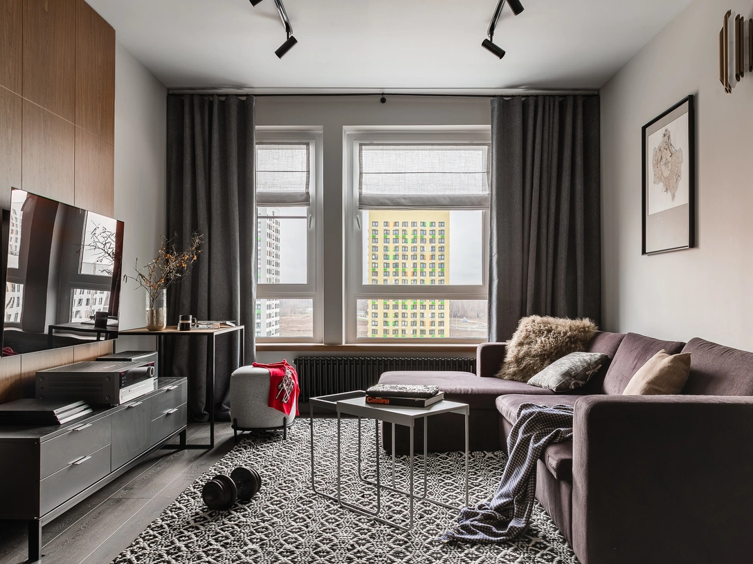 «Заказчики проекта — семейная пара, которая предложила мне оформить квартиру их сына. Мы давно знакомы, это уже наш четвертый проект, поэтому семья с легкостью мне доверилась, — рассказывает дизайнер Евгения Лебедева. — Особых пожеланий у хозяина не было. Самое главное — создать интерьер, который бы соответствовал образу жизни молодого мужчины и отражал его интересы и увлечения».