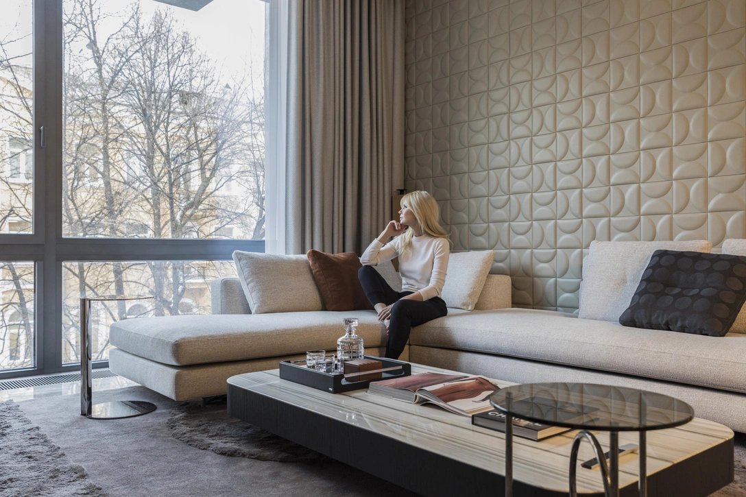 Квартира, расположенная в клубном жилищном комплексе в самом центре Москвы, оборудована по последнему слову техники. Встроенная вентиляция оснащена системой фильтрации, очистки и увлажнения воздуха. Мягкое, комфортное для глаз освещение дает профессиональный архитектурный свет, а дверцы шкафов оснащены задвижными системами Pocket doors, что невероятно удобно в использовании. Но это не главное.