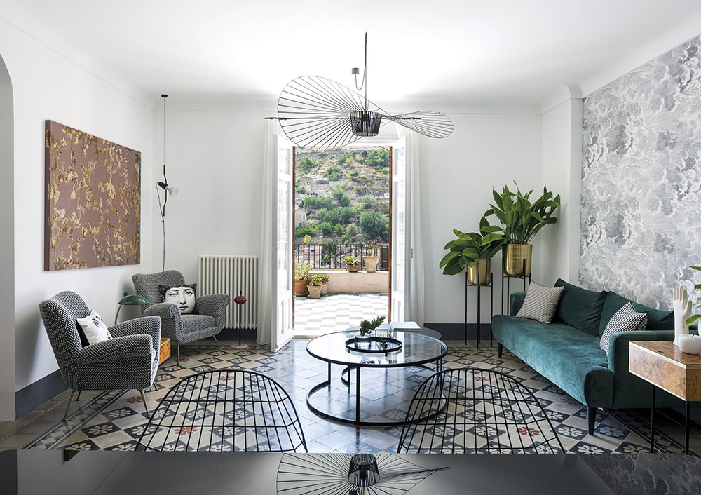 Хозяйка хотела, чтобы квартира выглядела более молодежно и современно, и Валентина и ее коллега по студии Джузеппе Минальди (Giuseppe Minaldi) взялись ей в этом помочь. Сицилийские дома XIX века, как правило, обладают богатым декором, который неизменно поражает тех, кто сюда попадает. В этой квартире хорошо сохранились полы из цементной плитки — в каждой комнате разные, — которые привели в порядок и сделали главным украшением интерьера. А чтобы пространство не выглядело вычурным, добавили для баланса современные детали и дизайнерскую мебель.