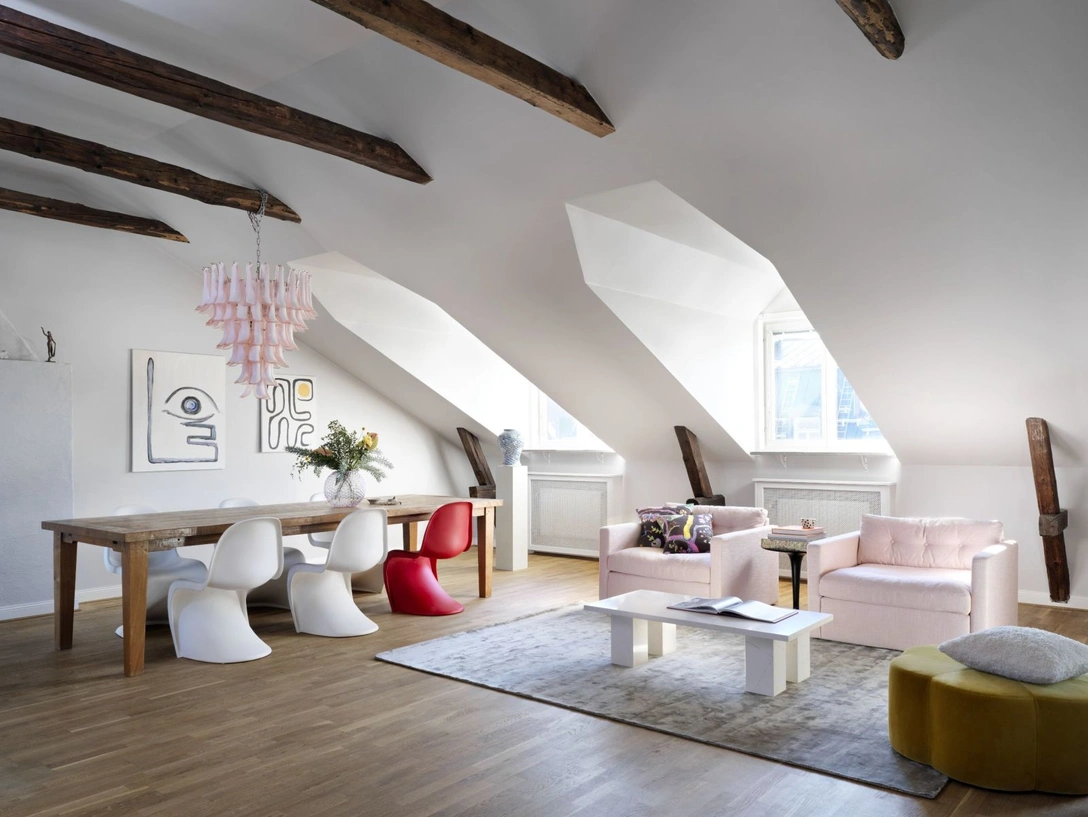 Новую квартиру Амелии также украшают ее собственные работы. В марте она вместе со своим мужем Валле и двумя дочерями Лукой и Люси переехала в мансарду площадью 140 кв.м. Апартаменты включают в себя просторную гостиную, три спальни, террасу и ванную комнату. Одна из спален пока служит ТВ-залом, поскольку Люси только исполнился год, и ей пока не нужна собственная комната.