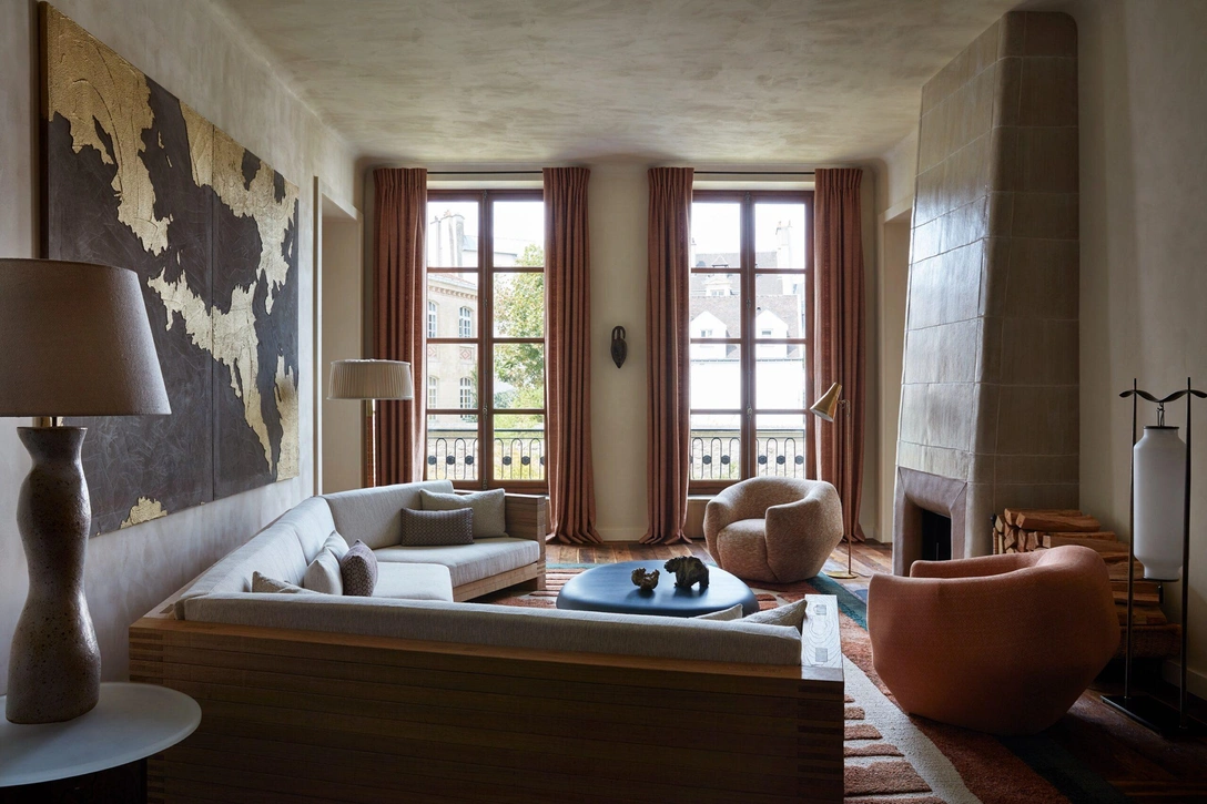 Семья обратилась к Йовановичу, когда поняли, что квартире требуется кардинальное обновление. Им хотелось, чтобы это был удобный дом, в котором найдется место их увлечению текстурами и любви к современному искусству, но при этом будут сохранены исторические детали. Здание, действительно, имеет богатую историю. Спрятанное во дворах Латинского квартала, оно когда-то служило пристанищем для многих писателей, поскольку здесь, на первом этаже, когда-то находилось издательство, и многие авторы предпочитали селиться прямо над ним. «Самым известным был Теодор де Банвиль, поэт и писатель-символист XIX века, друг Виктора Гюго и Шарля Бодлера», — рассказывает Пьер Йованович.