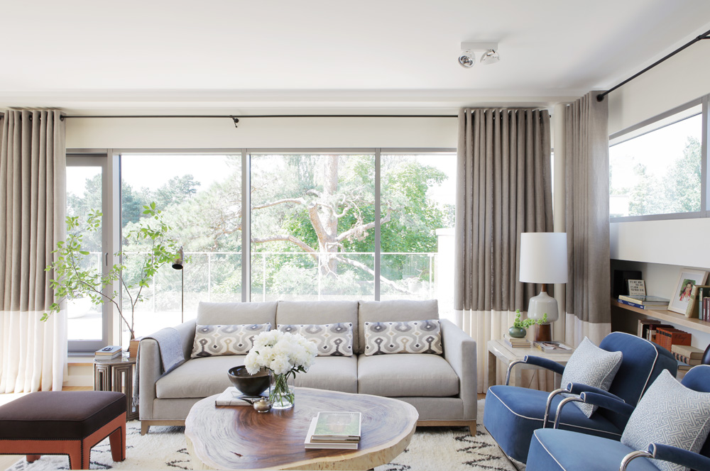 «Современная архитектура здания, огромные панорамные окна да и суровая природа Балтики, абсолютно не похожая на средиземноморскую, — в таком окружении прованс был бы явно неуместен. Поэтому я предложил не привязываться ни к какому стилю, а создать спокойное светлое пространство и наполнить его современной мебелью». Хозяин согласился и после этого практически не вмешивался в работу. Исключением стал лишь выбор цвета фасадов кухни. «Я привез из салона несколько образцов. Среди них был небесно-голубой оттенок, который я захватил в последний момент, как говорится, «до кучи». Именно его заказчик и выбрал. Пришлось немного изменить концепцию, подстраиваясь под выбранный цвет». Палитру интерьера определила близость моря и песчаных пляжей: холодный серый и голубой уравновешиваются теплыми песочными и бежевыми оттенками. «Работу над проектом я всегда начинаю с выбора тканей. Затем подбираю мебель. И только потом подыскиваю для всего этого подходящий фон — то есть отделочные материалы», — рассказывает Сергей.